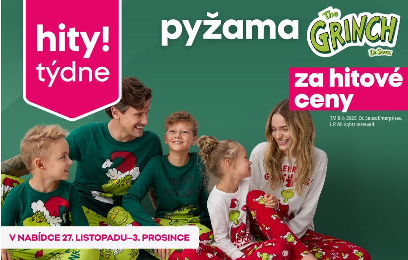 Veselé sny, a to nejen o Vánocích! Tento týden v Pepco najdete pyžama pro celou rodinu s motivem Grinche.