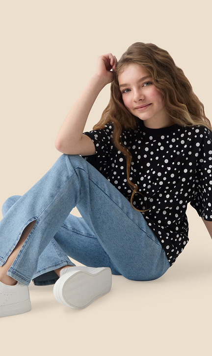 Vyberte si outfit, ve kterém budete vždy vypadat skvěle. Nejnovější kolekce obsahuje bavlněná trička pro dámy a dívky spolu s dokonale sladěnými džínami.