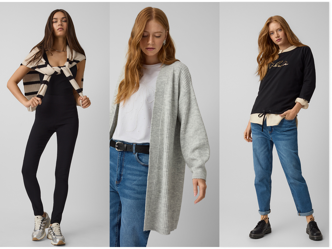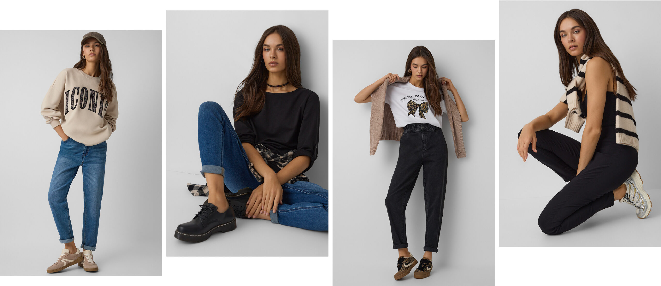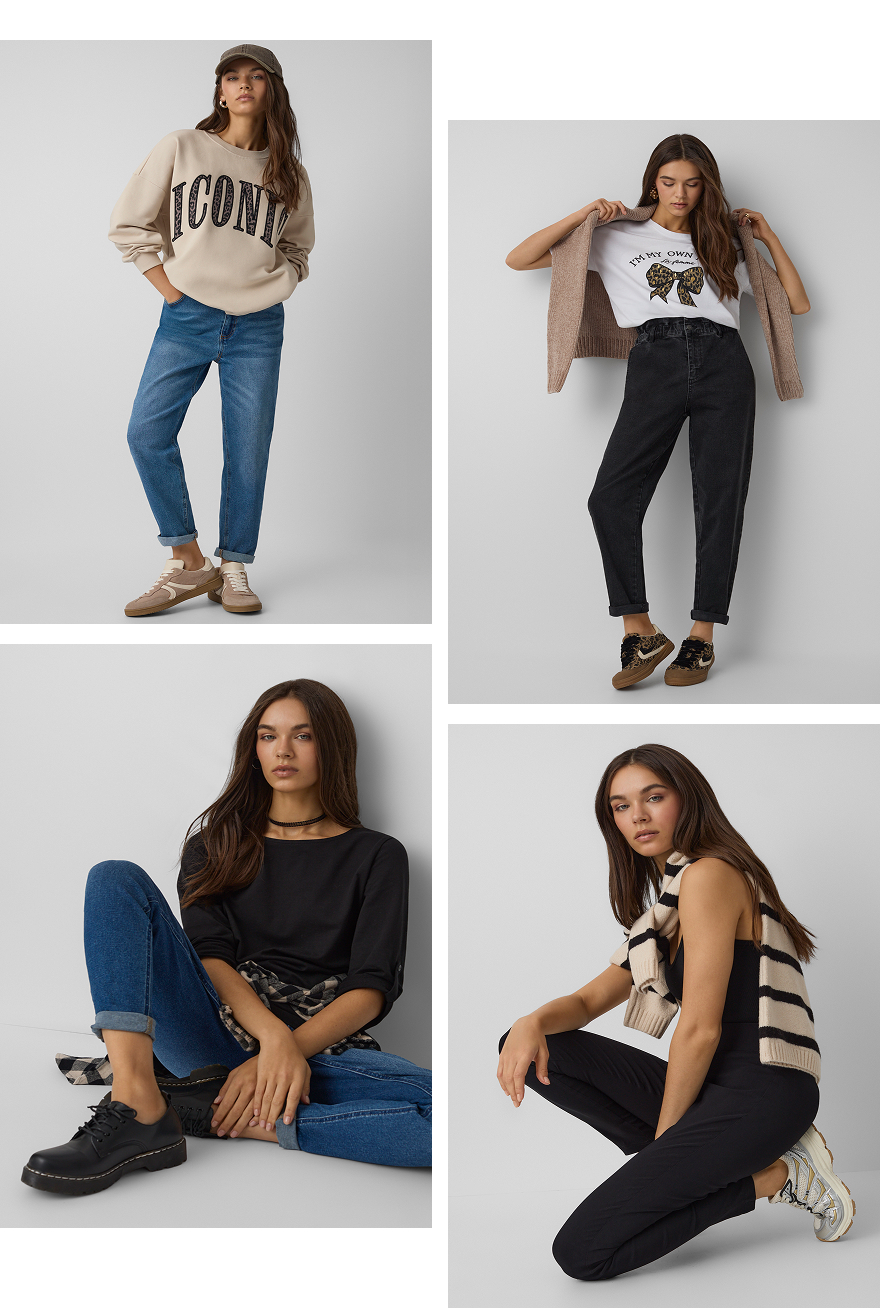 Džíny jsou základem pohodlného outfitu. Můžete je nosit s tričkem s krátkým nebo dlouhým rukávem, svetrem i mikinou. Nechte se inspirovat kombinacemi z naší nové kolekce a vytvořte si své vlastní, které vám nejvíc sluší. V jednom barevném tónu? Kontrastní? Nebo třeba s výrazným zvířecím potiskem? Projděte si naše tipy a zastavte se v Pepco na nákupy. Těšíme se na vás!