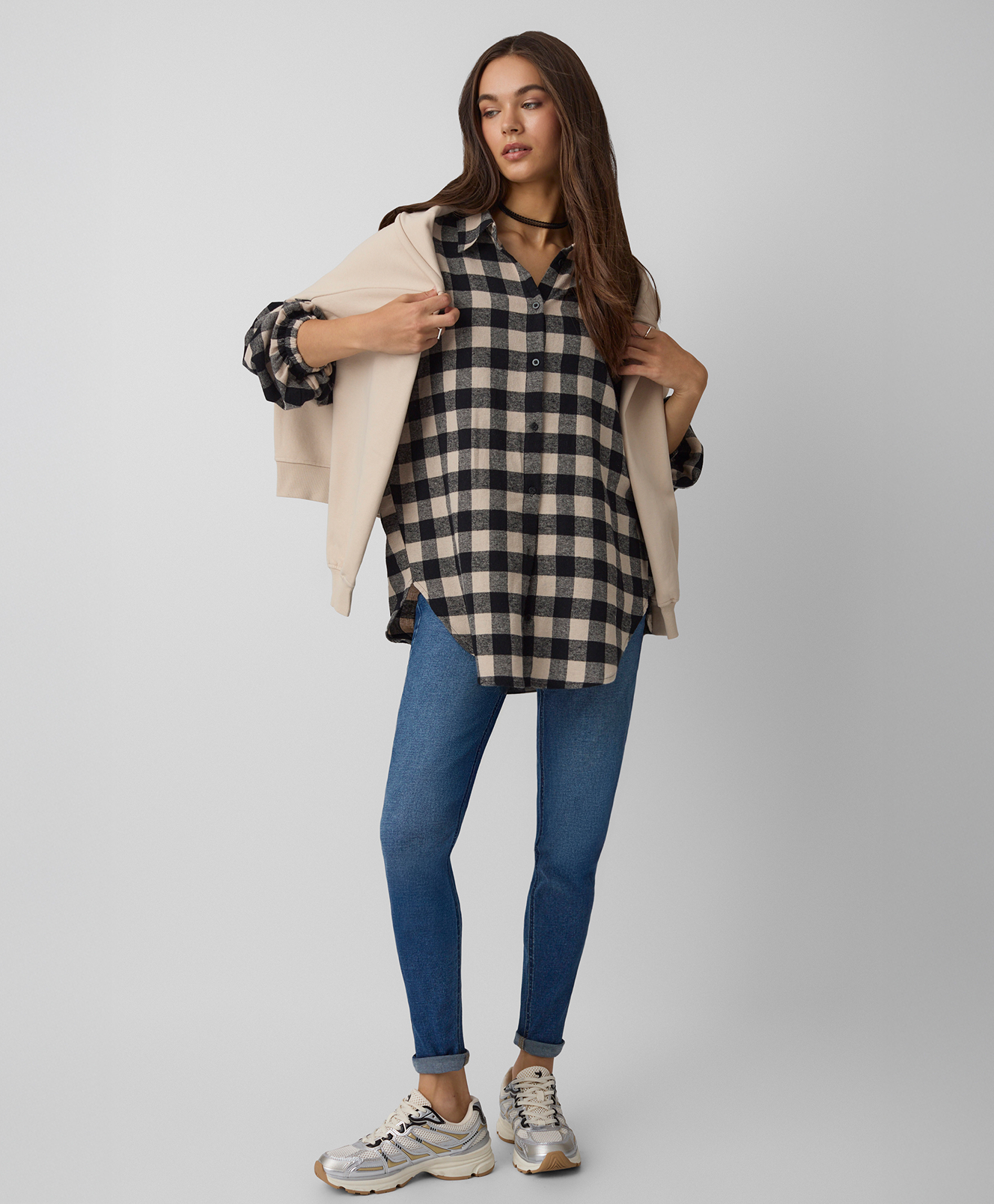 Návrat k trendu 90. let, který je v kolekci patrný, není pouze projevem nostalgie, ale především vědomým odkazem na období vyznačujícím se mimořádnou volností v módě. Tento trend se projevuje v oversize mikinách, které se dobře hodí k ležérnímu stylu i v kombinaci s elegantními modely šatníku. Vysoké kalhoty se širokými nohavicemi nejen navazují na tehdejší dobu, ale také dokonale zapadají do současných trendů pohodlné a univerzální módy. Crop topy, další typický prvek devadesátých let, byly obměněny a přizpůsobeny současným potřebám a nabízejí různé možnosti vytvoření outfitu.