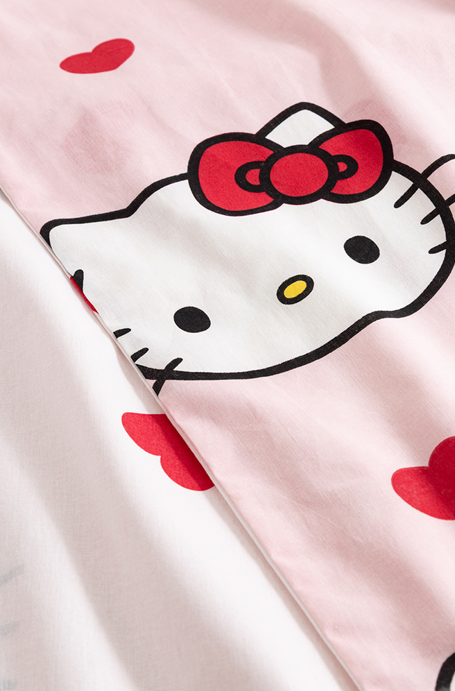 Ložní prádlo Hello Kitty, vyrobené ze 100% bavlny, potěší každého fanouška této ikonické postavičky. Ložní prádlo je vyrobené z měkké, příjemné a teplé bavlny pro pohodlný spánek. Souprava ložního prádla obsahuje povlak na polštář o rozměrech 50 x 60 cm a povlečení na peřinu o rozměrech 140 x 200 cm.