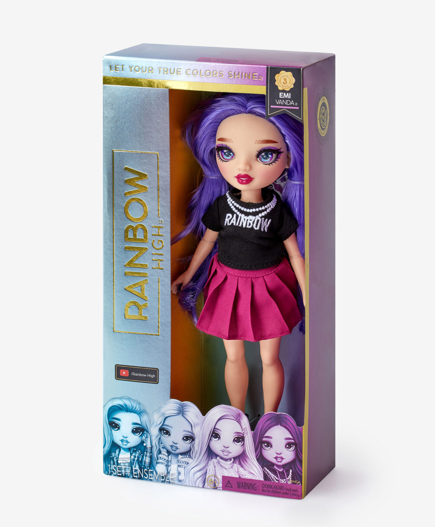 Panenka Rainbow High s fialovými vlasy vyniká svým úžasným účesem, který okamžitě upoutá pozornost. Její vzhled inspiruje k tvorbě nápaditých příběhů, díky čemuž je perfektní postavou pro děti, které si užívají hravá dobrodružství plná charakteru a kreativity.