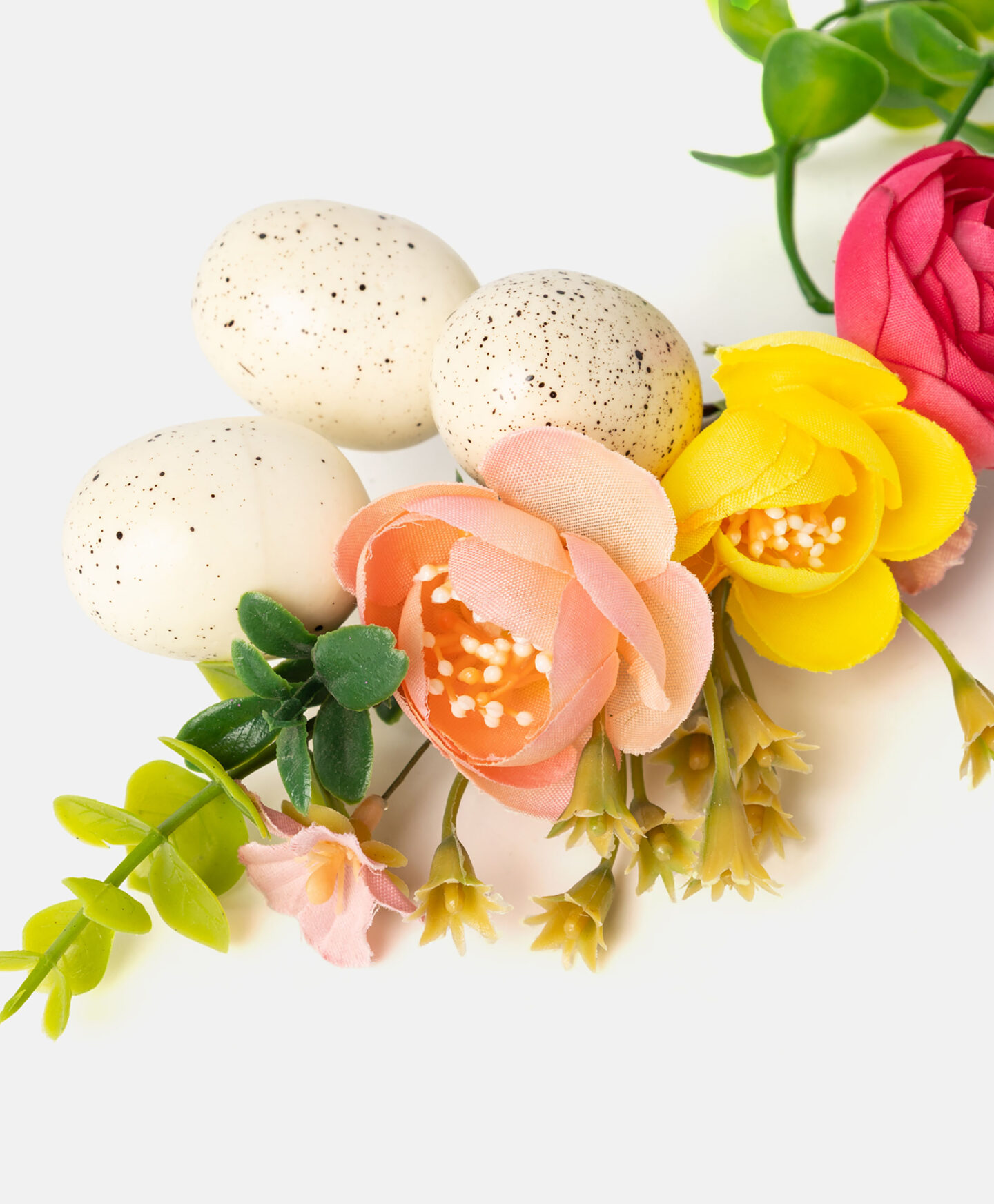 Barevná dekorace košíku je hotové aranžmá, které si můžete umístit na rukojeť vašeho velikonočního košíku. Je lehká a odolná vůči povětrnostním vlivům. Je to perfektní alternativa k čerstvým květinám, které v tomto ročním období nemusí být dostupné. Tři designy na výběr.