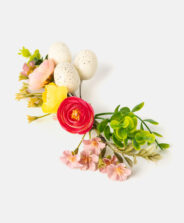Barevná dekorace košíku je hotové aranžmá, které si můžete umístit na rukojeť vašeho velikonočního košíku. Je lehká a odolná vůči povětrnostním vlivům. Je to perfektní alternativa k čerstvým květinám, které v tomto ročním období nemusí být dostupné. Tři designy na výběr.