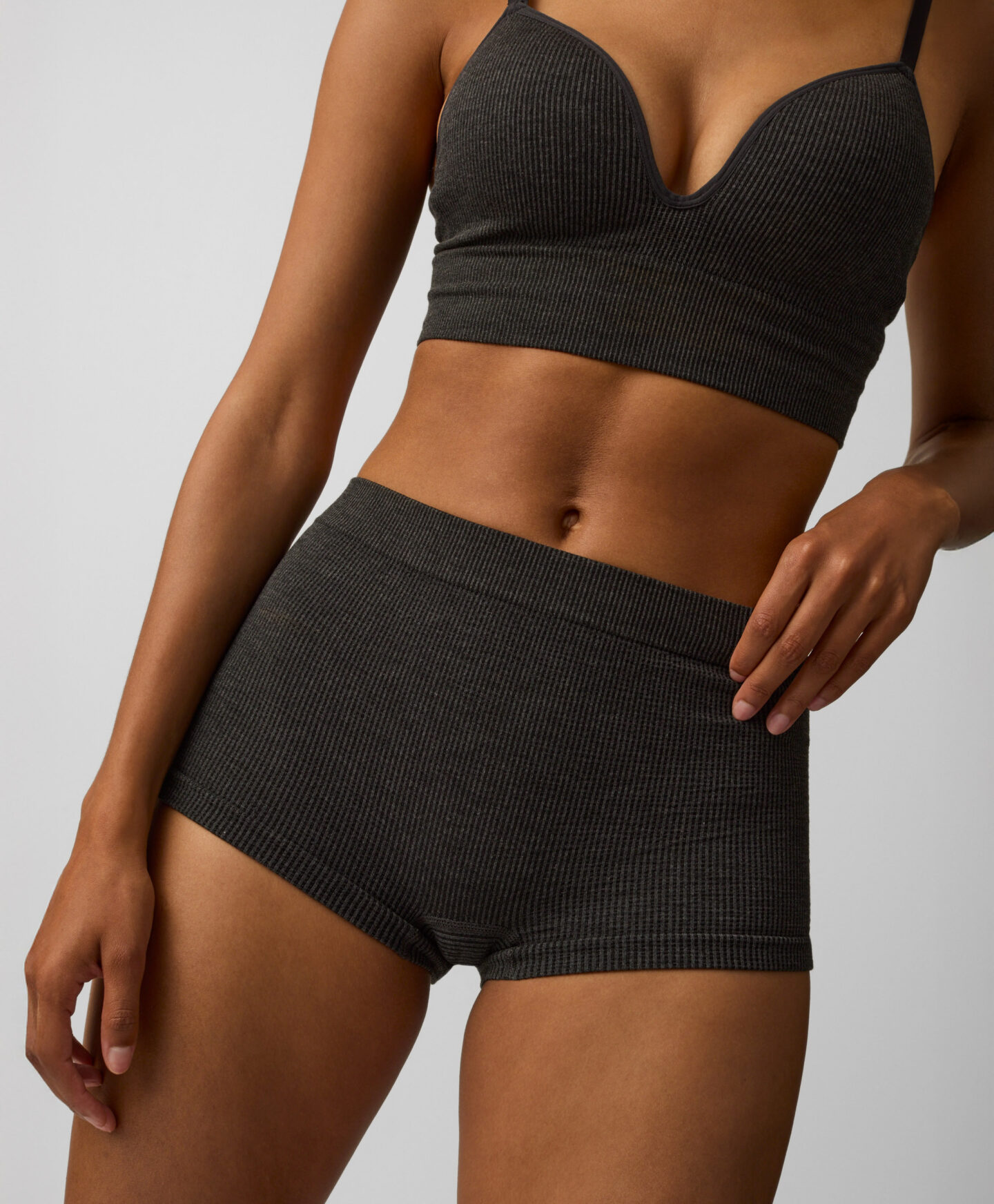 Bezešvé šortkové kalhotky 2 ks v šedé barvě jsou nezbytnou volbou na každý den. Tyto šortkové kalhotky nabízejí plnější krytí, čímž zajišťují pohodlí a sebevědomí v každé situaci. Díky bezešvému designu jsou neviditelné i pod tím nejpřiléhavějším oblečením. Dostupné ve čtyřech barvách.