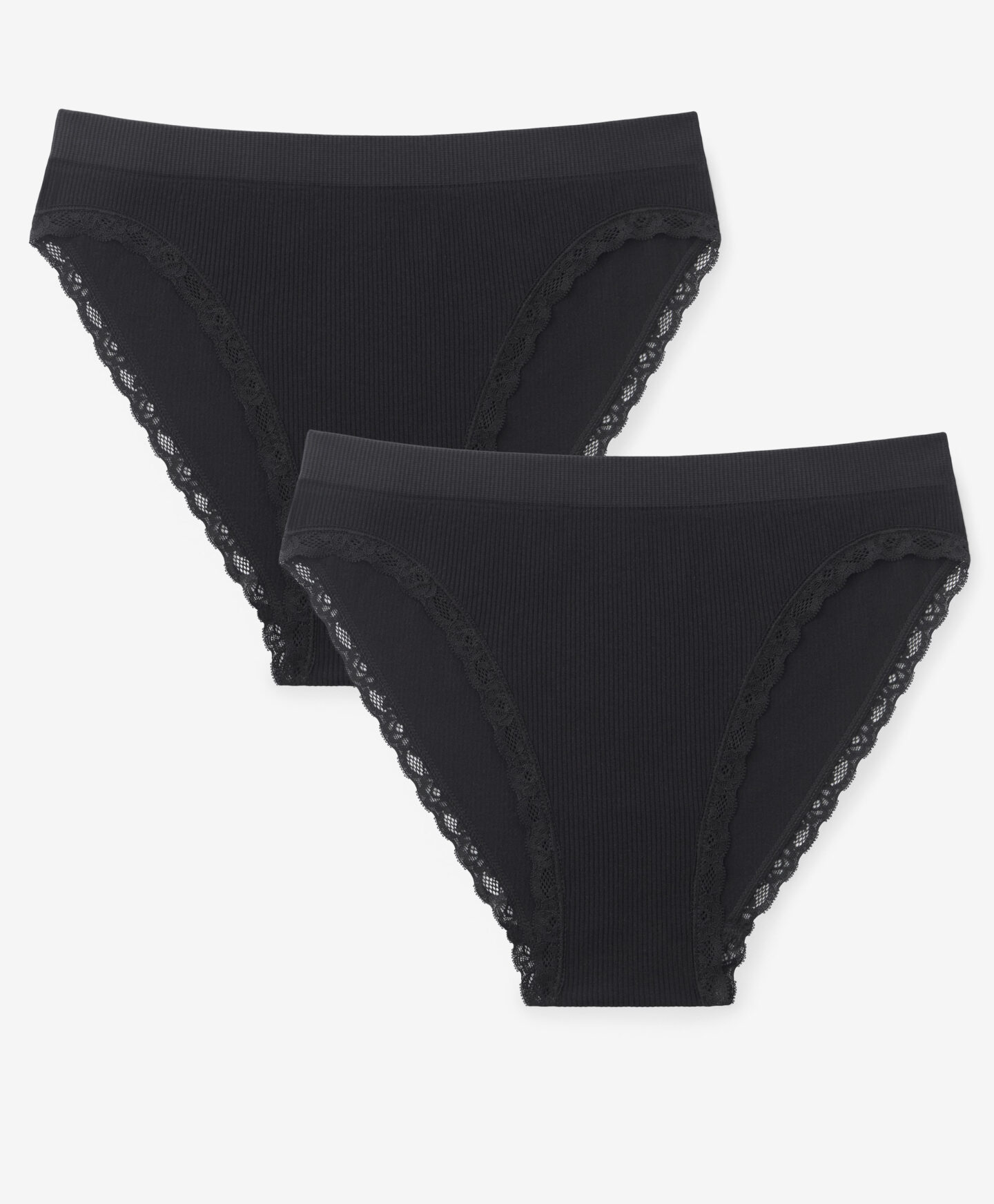Bikinové kalhotky s krajkou 2 ks v černé barvě jsou ideální pro milovnice romantického spodního prádla. Smyslná krajka podněcuje fantazii, ale je také ideální na každodenní nošení. Bikinový střih poskytuje plné krytí a pohodlí a zároveň zdůrazňuje ženské křivky.