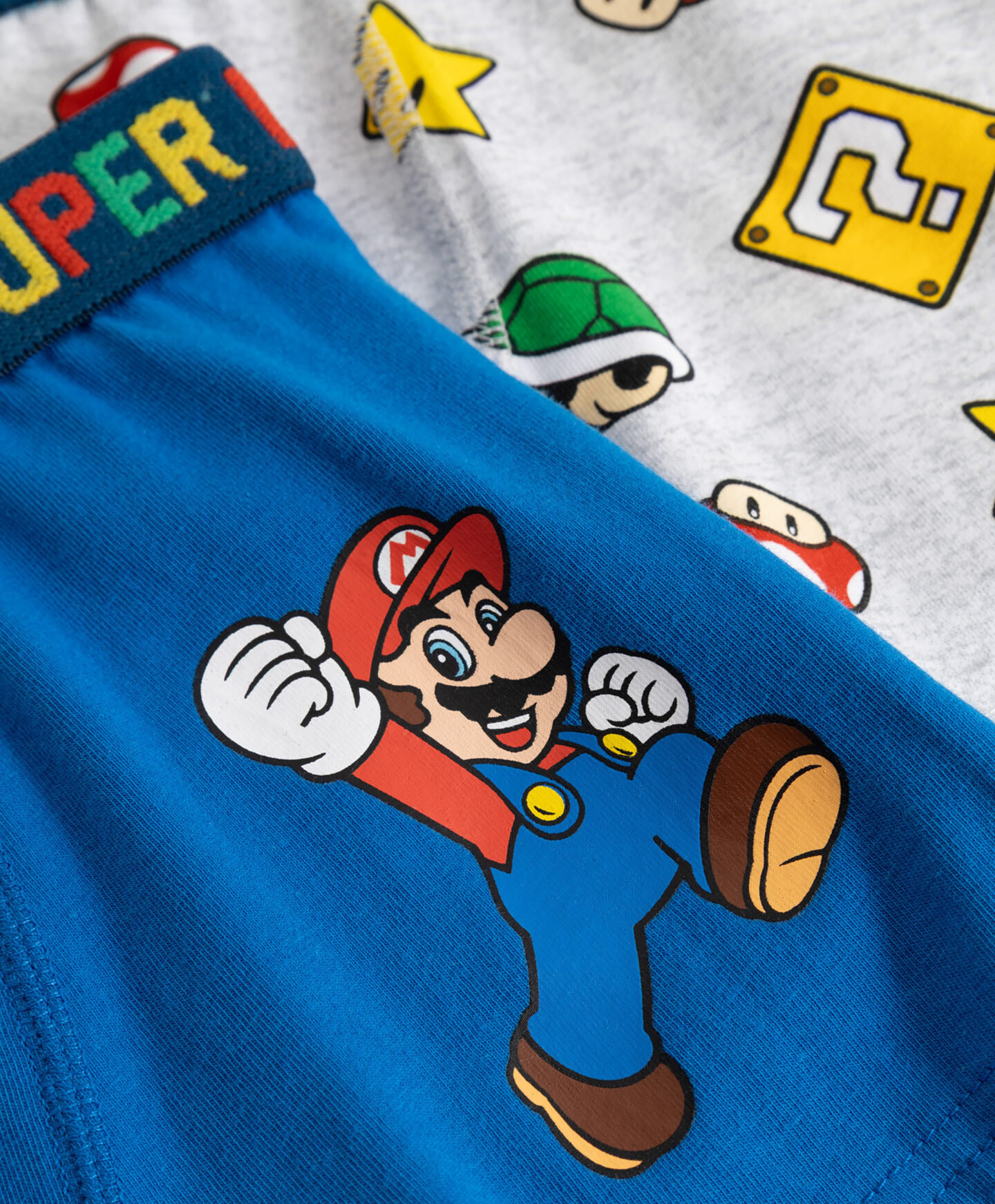 Chlapecké boxerky Super Mario 2 ks s vysokým podílem bavlny jsou kombinací pohodlí a atraktivního designu. Každý kus má jiný vzor s ikonickou postavičkou z her Nintendo a barevný nápis na gumě. Boxerky jsou pohodlné a poskytují volnost pohybu.