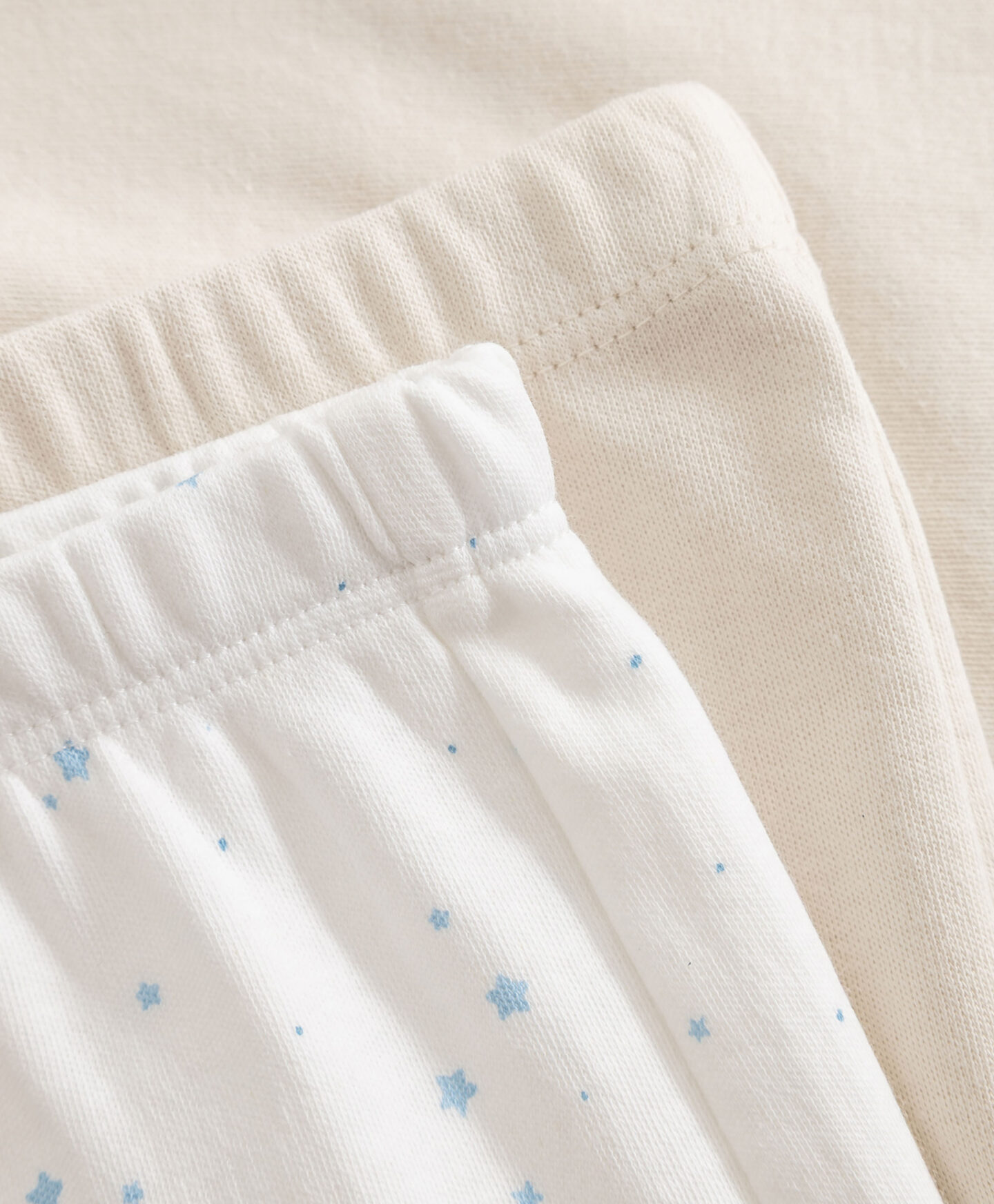 Chlapecké polodupačky 2 ks ze 100% organické bavlny jsou perfektní volbou od narození. Měkoučký materiál obepne pokožku vašeho miminka a zajistí mu pohodlí během spánku i aktivit. Dva vzory v sadě vám umožňují vytvořit si různé outfity. Legíny se perfektně hodí k žebrovaným bodům z nejnovější kolekce.