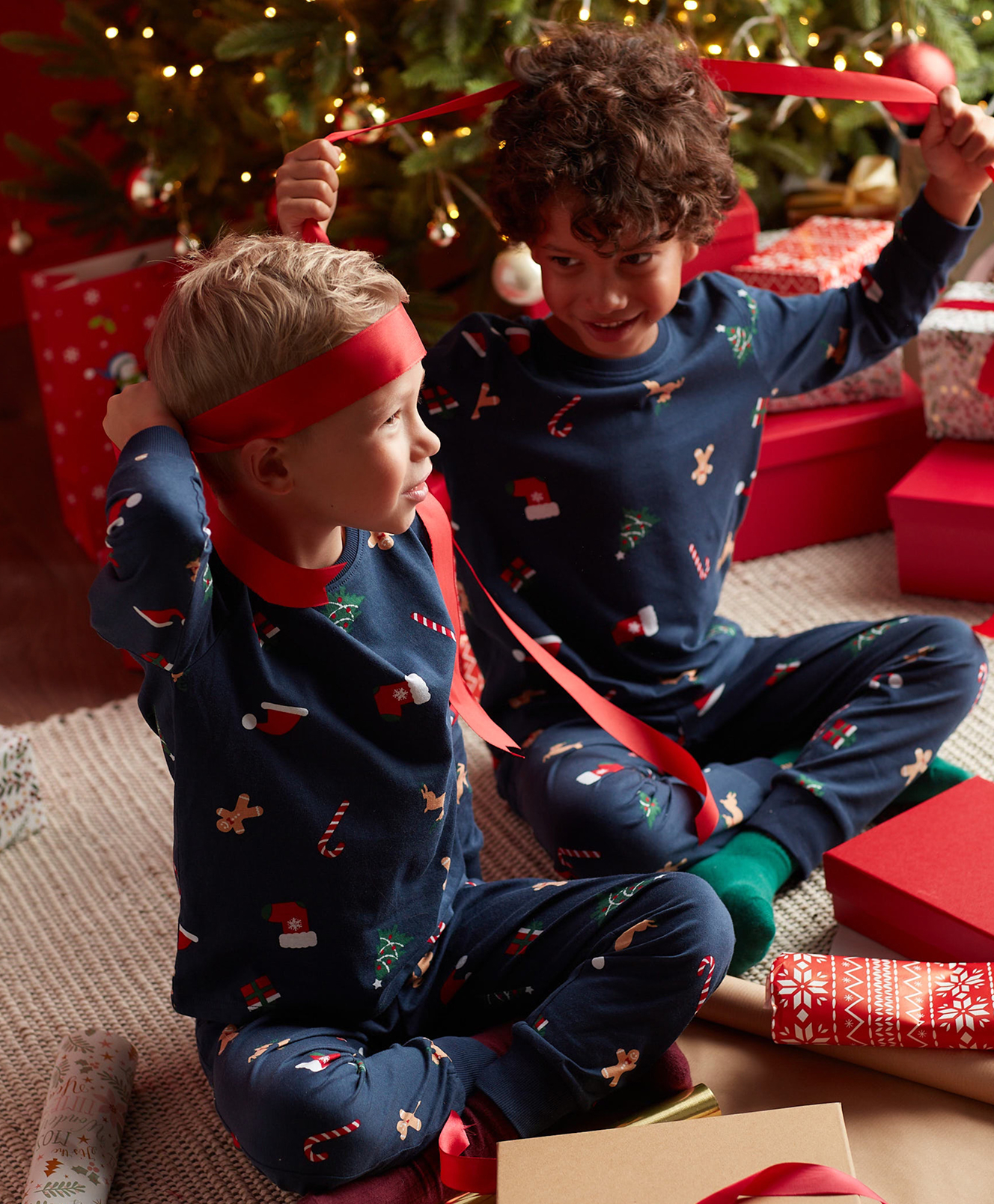 Toto chlapecké vánoční pyžamo je vyrobeno ze 100% měkké a k pokožce šetrné bavlny. Souprava se skládá z trička s dlouhým rukávem a kalhot, díky čemuž je ideální na zimní noci. Prodyšná vlákna pohodlně uloží vašeho drobečka ke spánku a zabrání přehřátí. Toto pyžamo je zárukou sladkého lenošení!