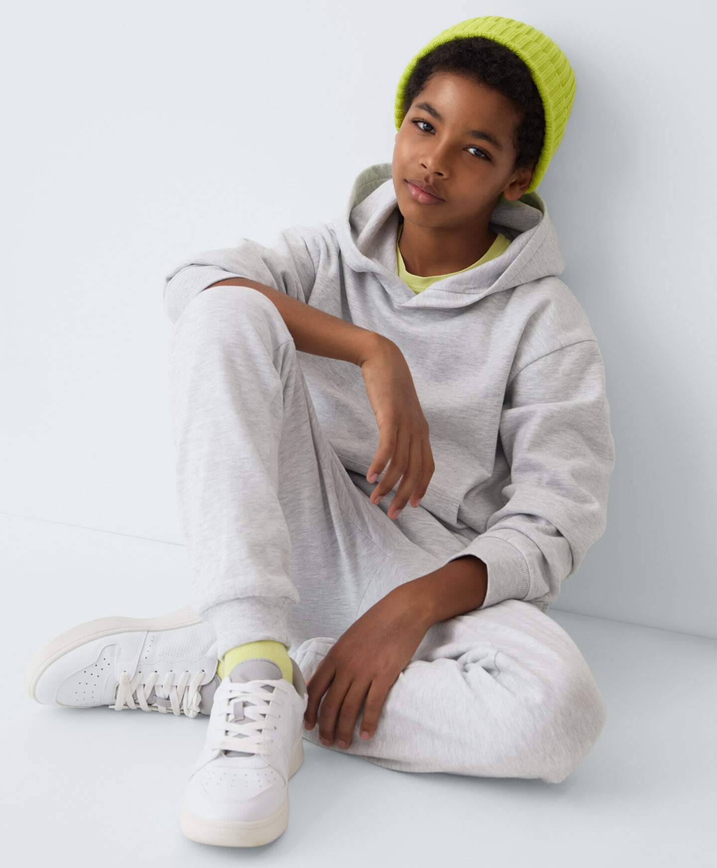 Chlapecké šedé kalhoty s elastickými manžetami se zaměřují na jednoduchost, která drží krok s mladistvou energií! Bez knoflíků, s pohodlným vázáním v pase a gumičkami na kotnících. Díky tomu jsou kalhoty ideální pro plné zapojení se do hry a sportovních aktivit!