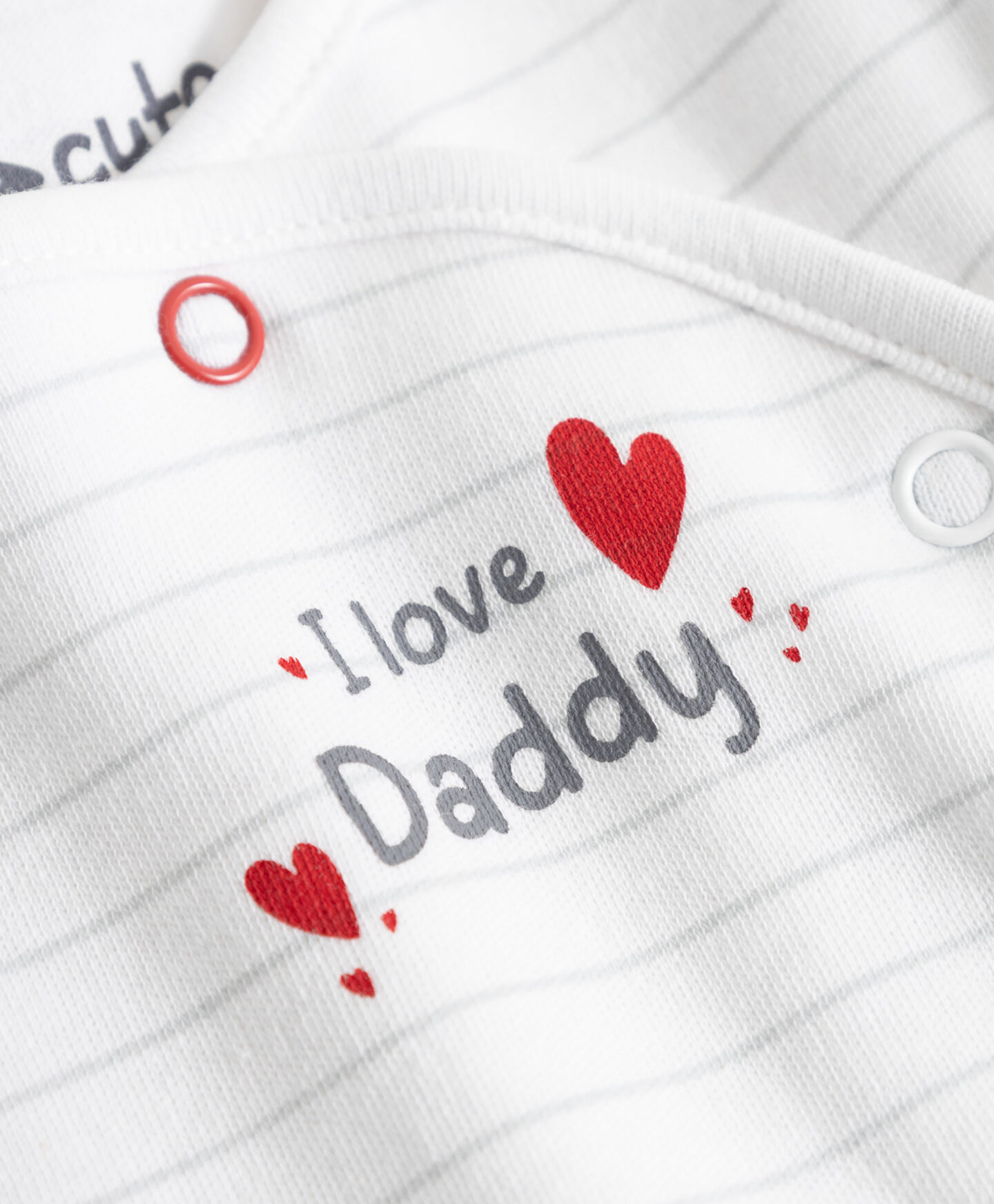 Chlapecký overal ze 100% bavlny s nápisem je ideální pro valentýnský outfit, ale i na každodenní aktivity. Dlouhé rukávy a kalhoty udrží drobečka v teple, zatímco měkký materiál jemně obepíná citlivou pokožku. Zapínání na patentky usnadňuje oblékání a přebalování miminka.