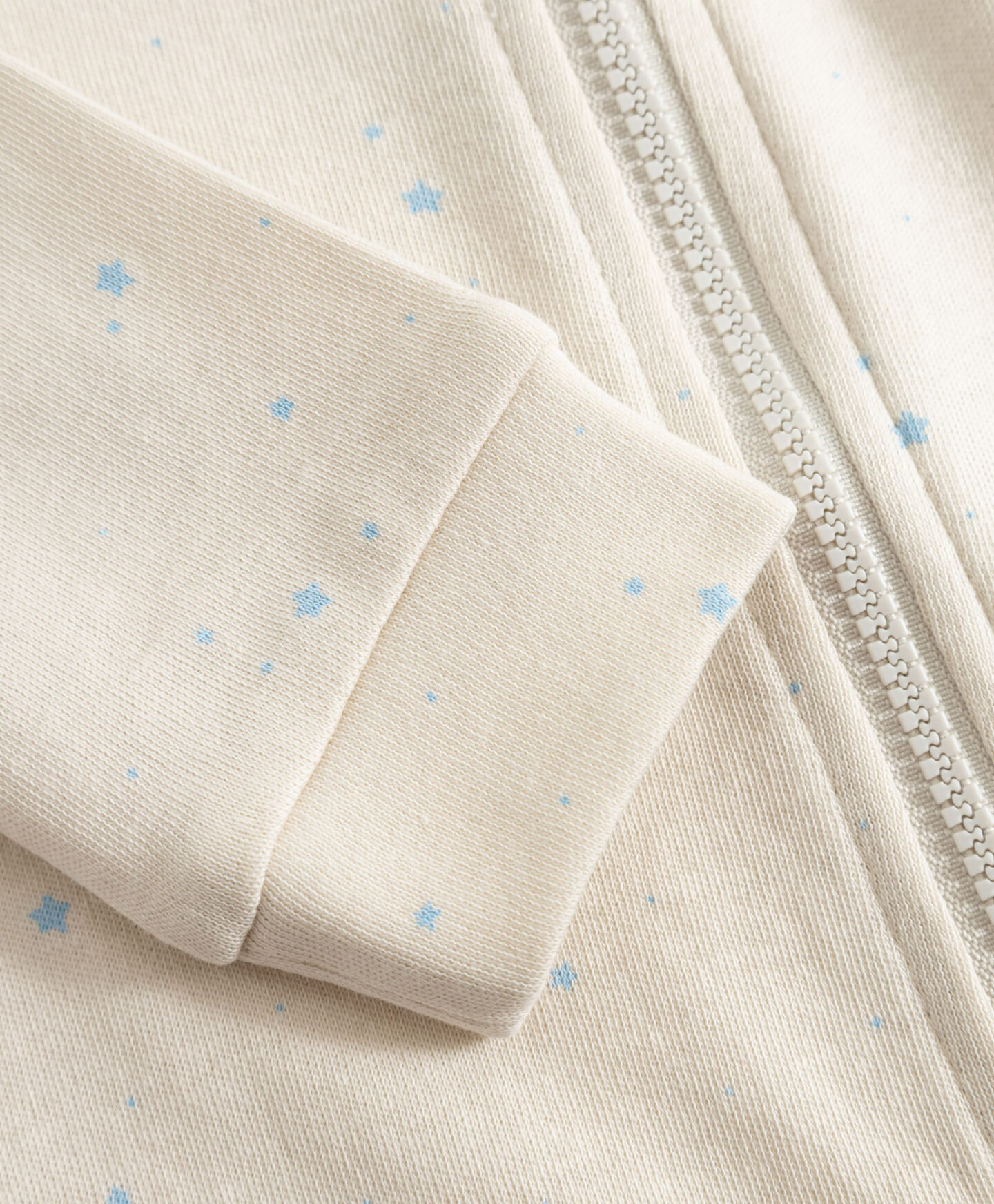Chlapecký overal ze 100% organické bavlny má praktické zapínání na zip vpředu, díky čemuž je oblékání a přebalování vašeho drobečka stejně snadné. Dlouhé rukávy a kalhoty jemně obepínají pokožku a zajišťují teplo a pohodlí při každém pohybu. Jemný vzor hvězdiček dodá vašim společným chvílím nádech šarmu.