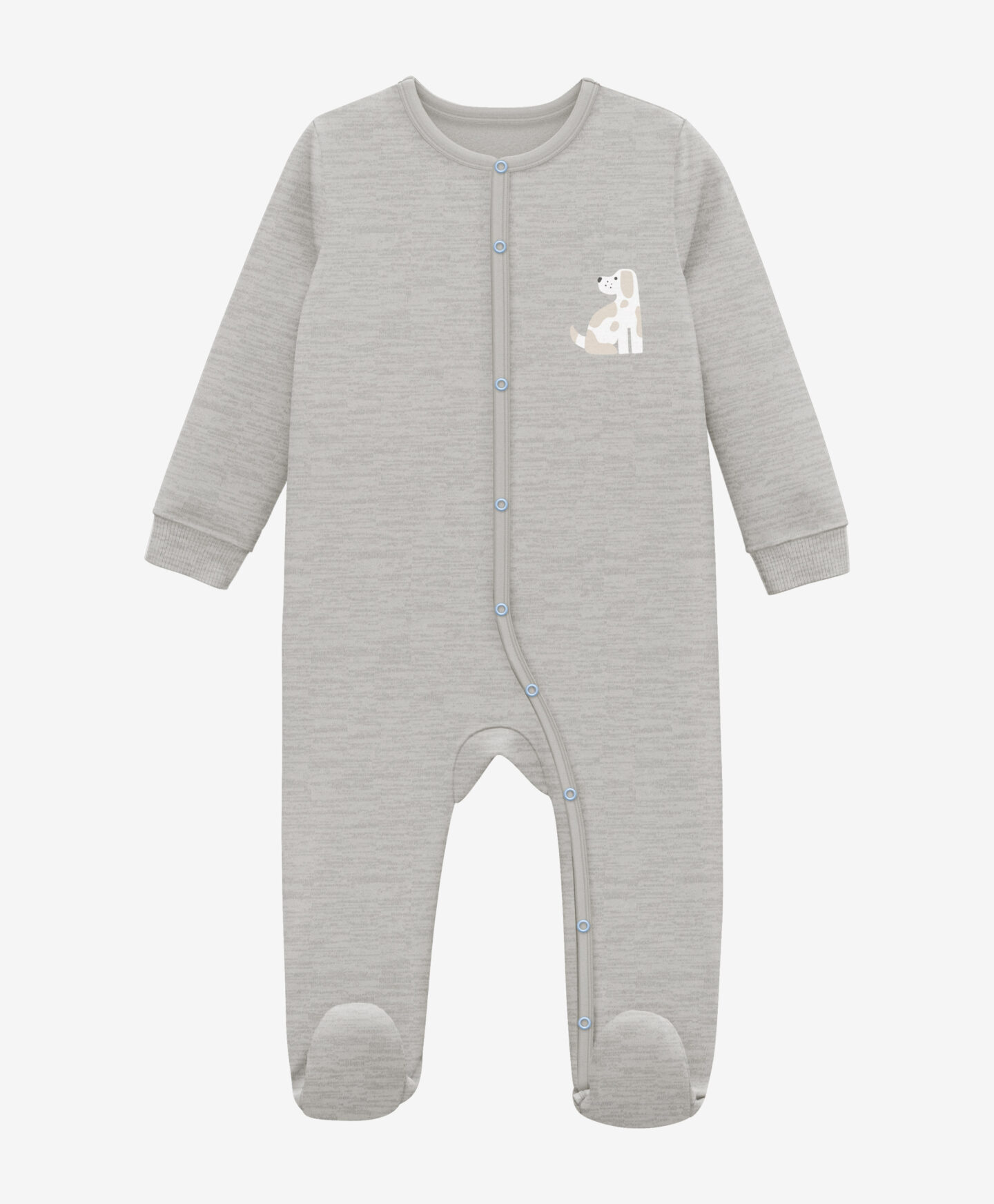 Chlapecký overal 2 ks ze 100% bavlny je perfektní volbou pro citlivou pokožku miminka. Je vyroben výlučně z bavlny a poskytuje pohodlí během hry i spánku. Zapínání na patentky po celé délce overalu je neuvěřitelně praktické a umožňuje rychlé a snadné oblékání a přebalování miminka. Vzor psa dodává šarm a hravý charakter. V nabídce jsou dostupné i jiné vzory.