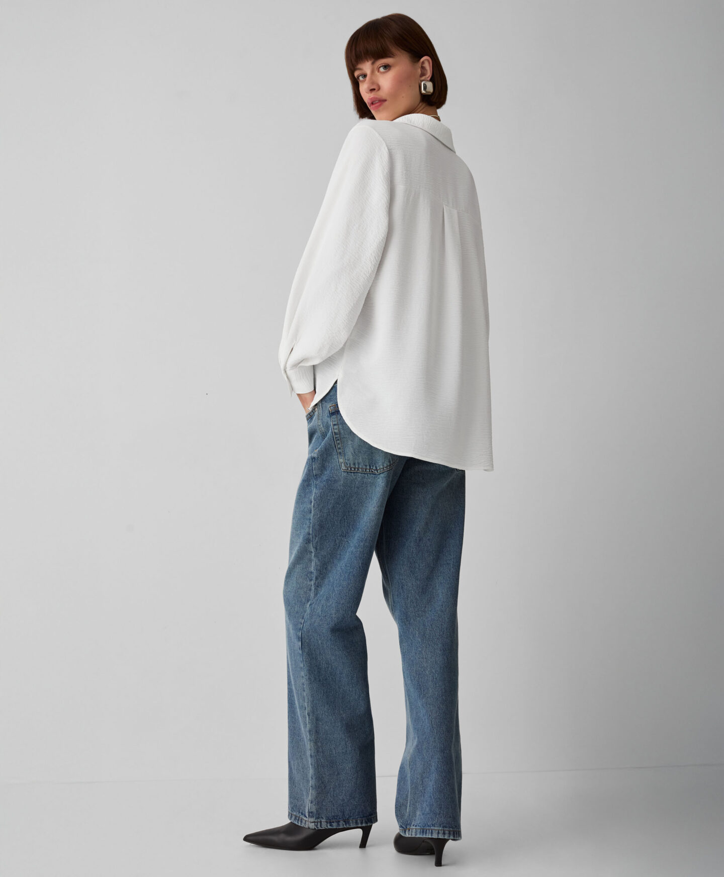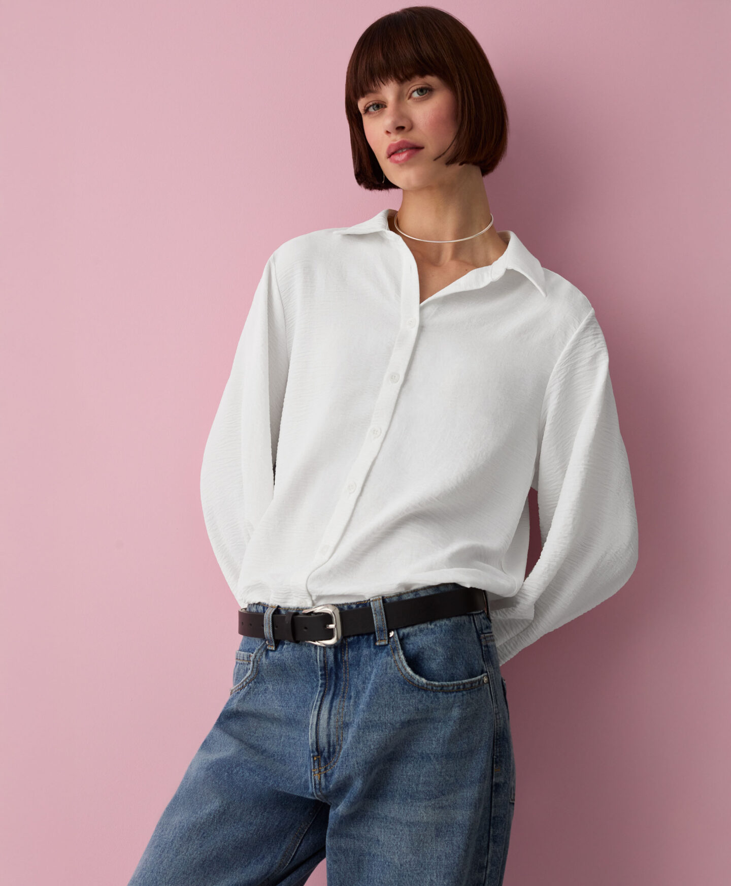 Dámská bílá nařasená košile je návrhem pro milovnice klasických stylů s moderním nádechem. Má nadčasovou bílou barvu, elegantní límec a volný střih a řasení po celé délce jí dodává charakter. Bude vypadat skvěle v kombinaci s džínami nebo elegantními kalhotami.