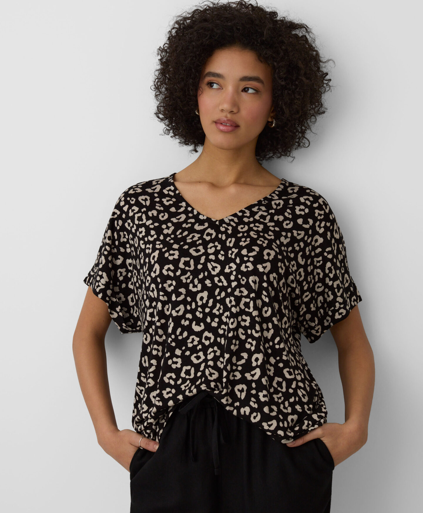 Tato dámská halenka s výstřihem do V ze 100% viskózy v sobě spojuje pohodlí a všestrannost. Zkombinujte jej s vašimi oblíbenými džínami nebo elegantnějšími chino kalhotami či cigaretovými kalhotami. Je to perfektní volba do kanceláře, na rychlé nákupy nebo rodinný výlet.