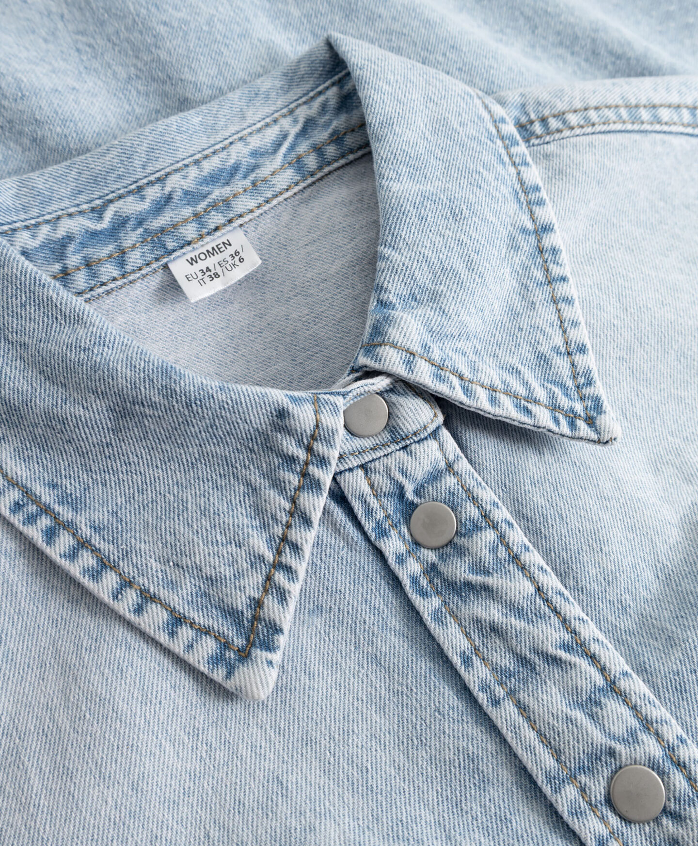 Dámská džínová košile ze 100% bavlny je nepostradatelným prvkem šatníku pro každou milovnici klasického stylu. Džínovina v tlumené modré barvě se bude krásně hodit ke každému kousku vašeho šatníku – od kalhot až po sukně, od ležérních až po elegantnější kombinace. Tričko jemně tvaruje postavu a zároveň poskytuje naprostou svobodu pohybu a bezkonkurenční pohodlí při nošení. Kapsy na hrudi jsou funkční, ale zároveň dodávají oblečení charakter.
