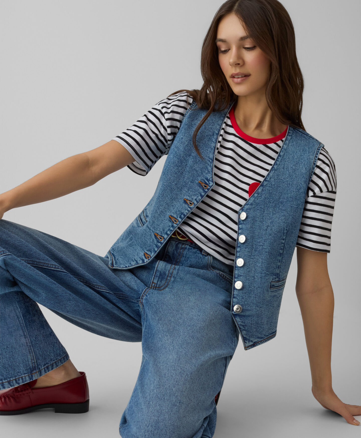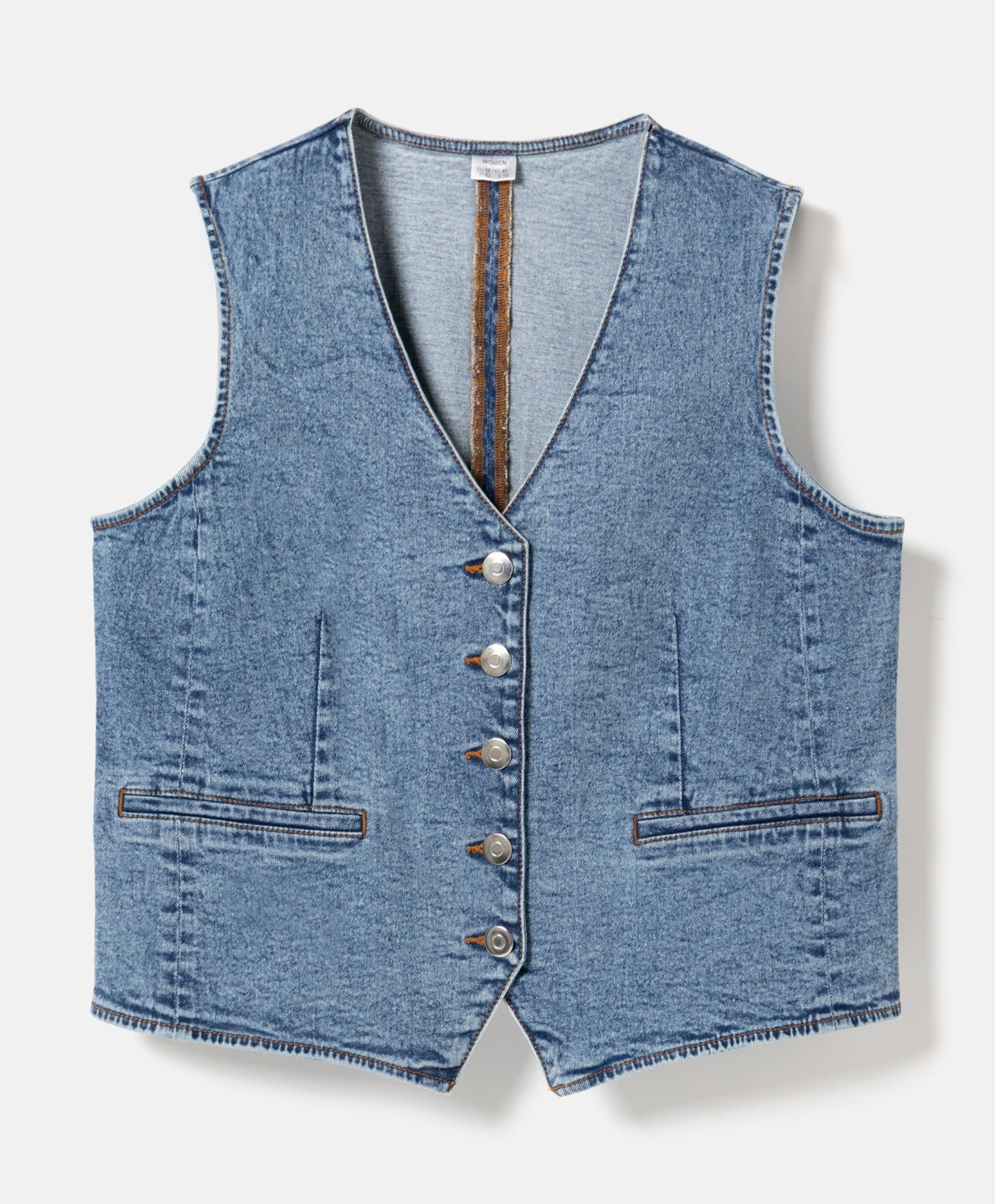 Dámská džínová vesta s vysokým podílem bavlny se hodí k mnoha outfitům. Je to perfektní doplněk, který doplní elegantní košili i ležérnější triko. Přídavek elastanu zajišťuje dokonalé přizpůsobení postavě.