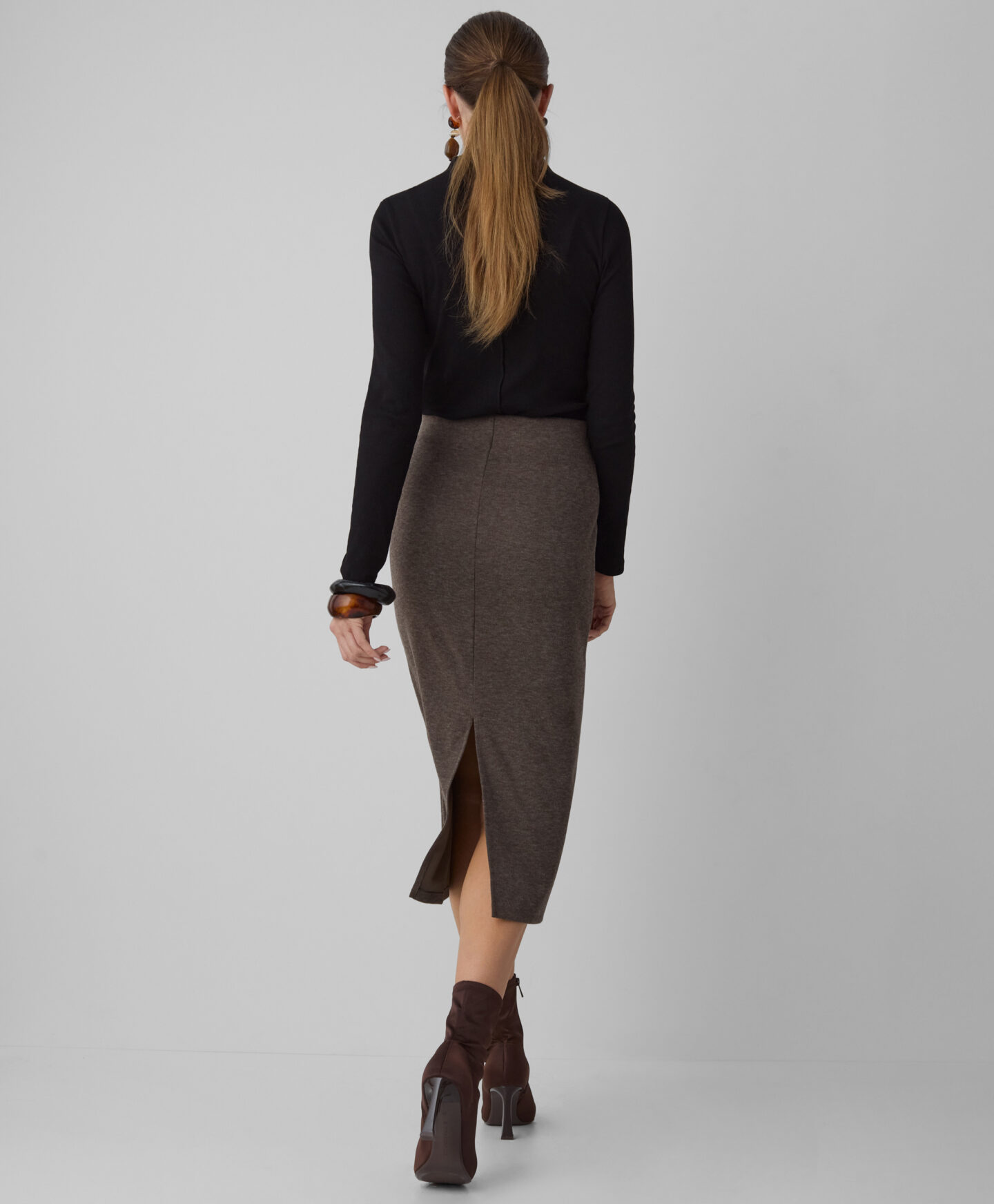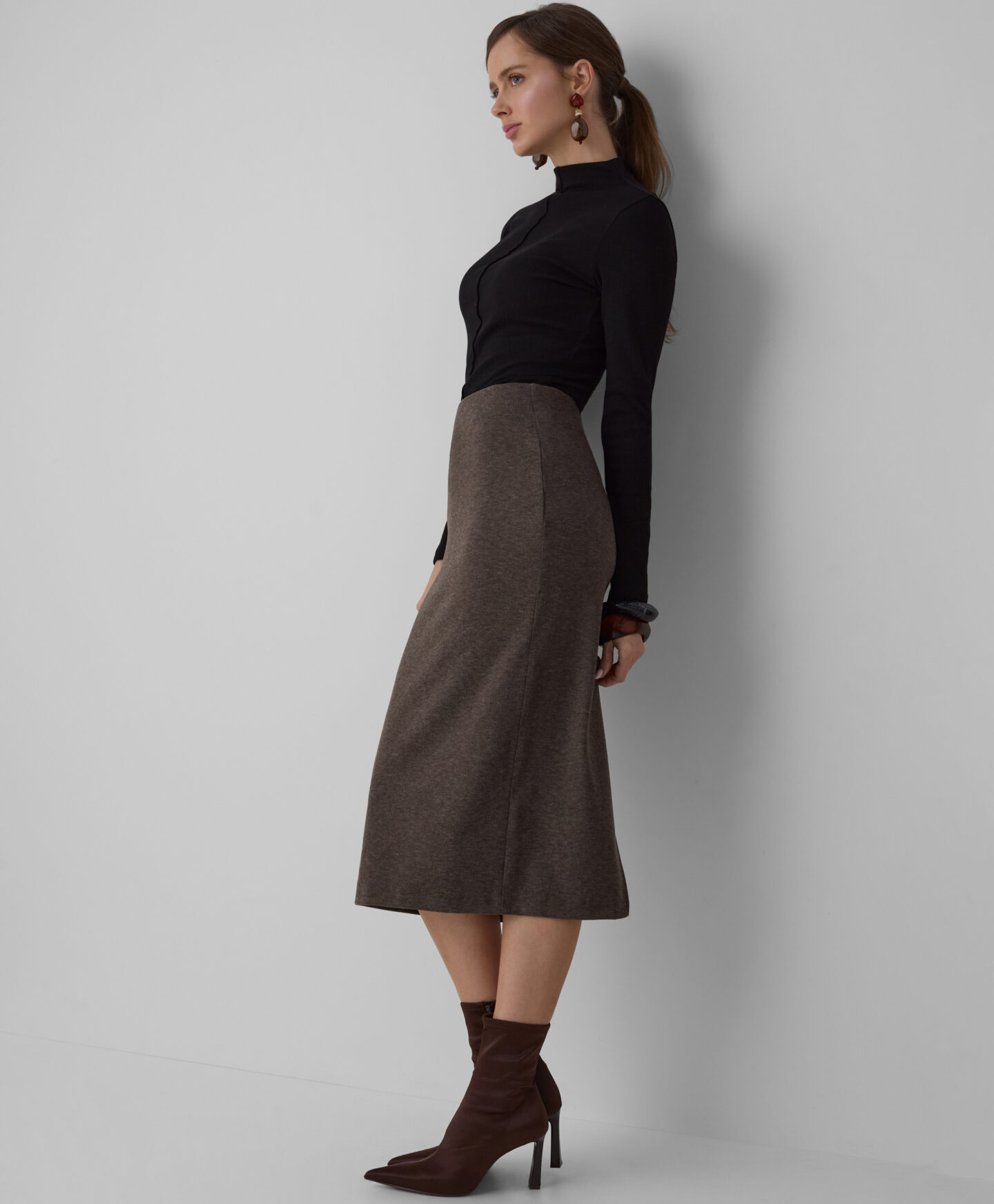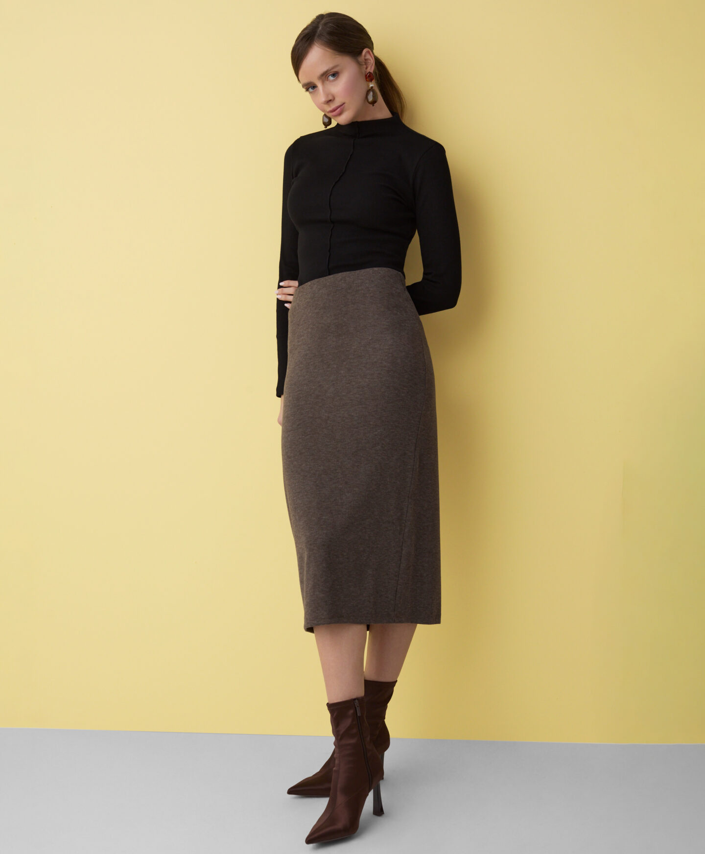 Dámská hnědá midi sukně se perfektně hodí k tričku ze stejné barevné kolekce. Je odolná a příjemná na dotek. Skvěle se hodí k ležérní halence i k elegantní košili. Hluboký odstín hnědé dokonale zapadá do podzimně-zimní atmosféry.