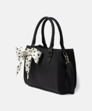 Černá dámská kabelka s puntíkovaným šátkem je elegantním doplňkem, který kombinuje klasický styl s moderním nádechem. Kabelka je vyrobená z odolných materiálů a hodí se ke každému outfitu. Dekorativní šátek jí dodává jedinečný charakter.
