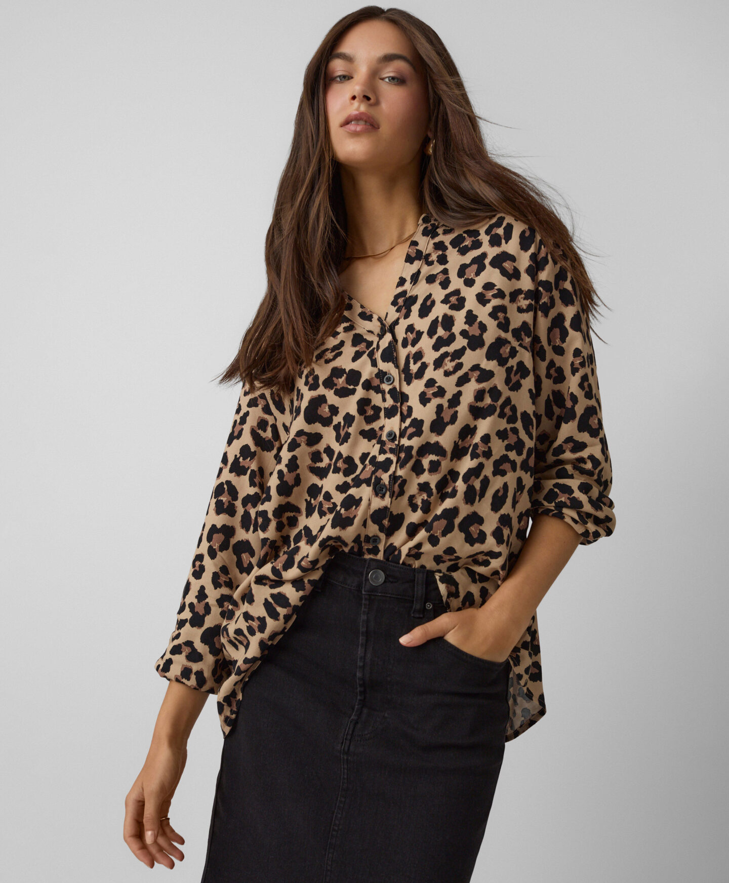 Dámská košile ze 100% viskózy se vzorem bude módním doplňkem vašeho šatníku. Je lehká, vzdušná a prodyšná. Ideální na nošení pod sako nebo teplejší pulovr. Puntíkovaný vzor ji odlišuje od ostatních halenek.