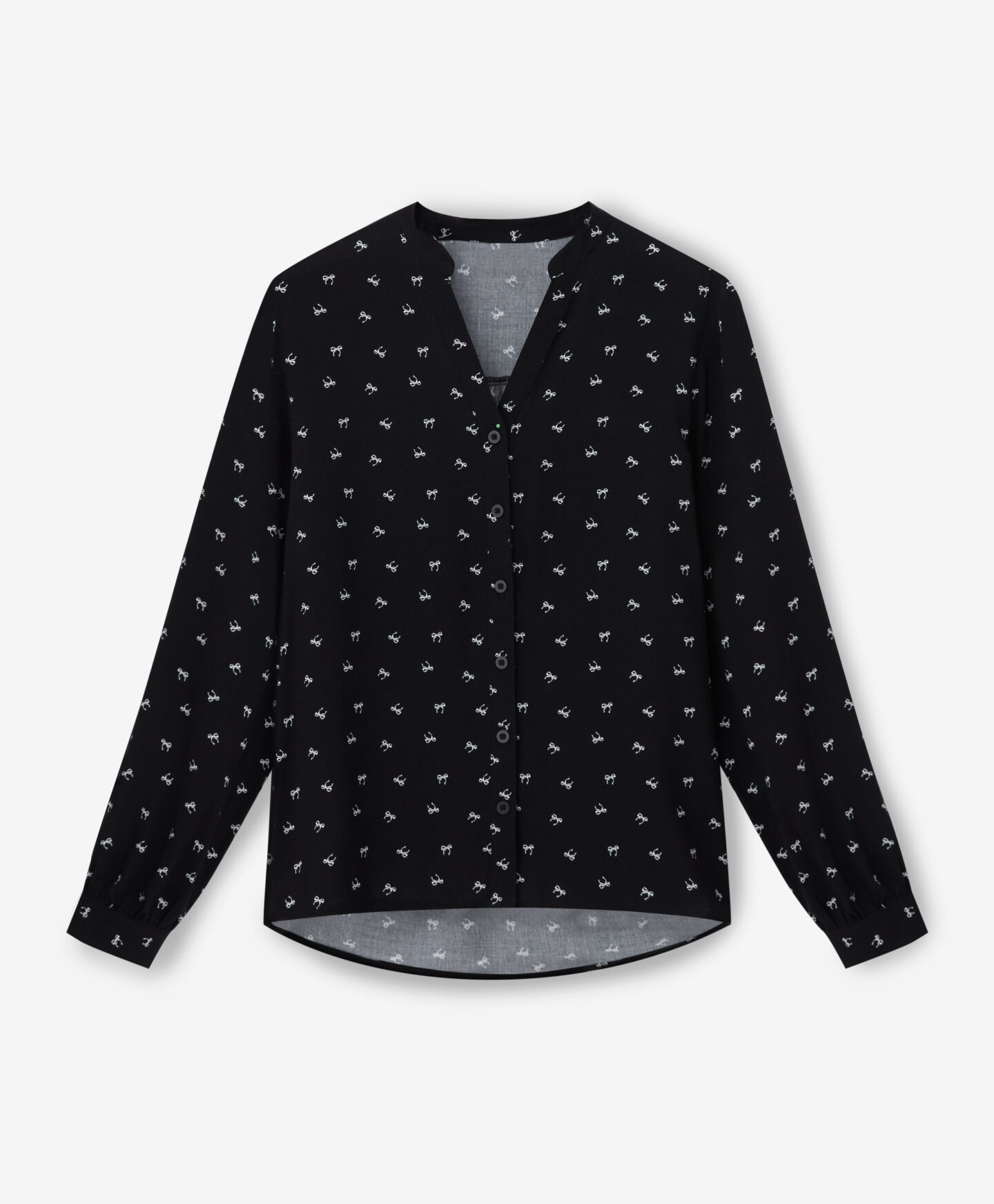 Dámská košile s dlouhými rukávy ze 100% viskózy je zdobená decentním vzorem mašle. Je lehká, vzdušná a romantická. Ideální nejen na každodenní nošení, ale i na speciální příležitosti. Prodyšná viskóza z ní činí ideální volbu pod sako, pulovr nebo kardigan.