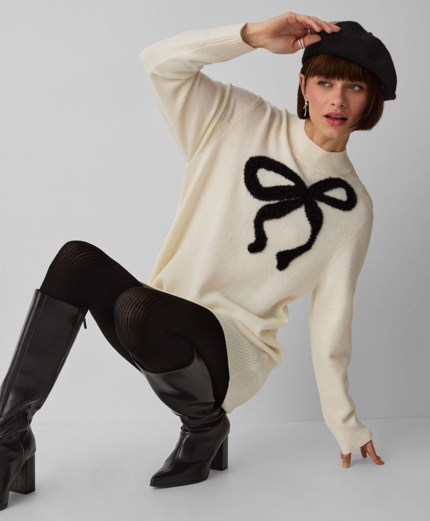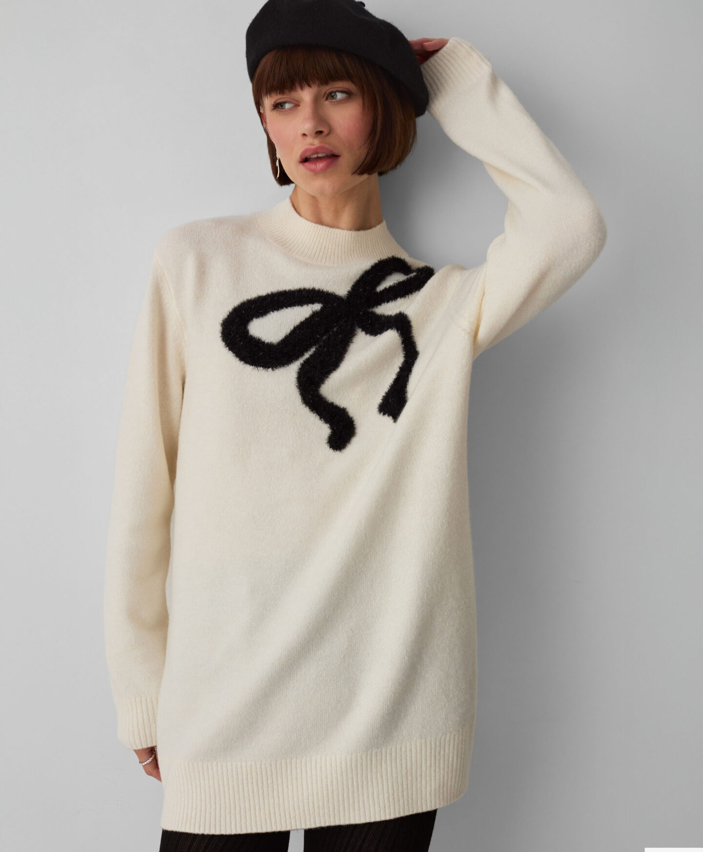 Dámská krémová tunika s mašličkou a lurexem dokonale doplní váš podzimní šatník. Má dlouhý střih, je hřejivá a stylová. Bude vypadat skvěle s legínami nebo silnějšími punčocháči. V kombinaci s kozačkami po kolena nebo kotníkovými botami vytvoří outfit ideální na procházky, do kanceláře nebo na setkání s přáteli ve volném čase.
