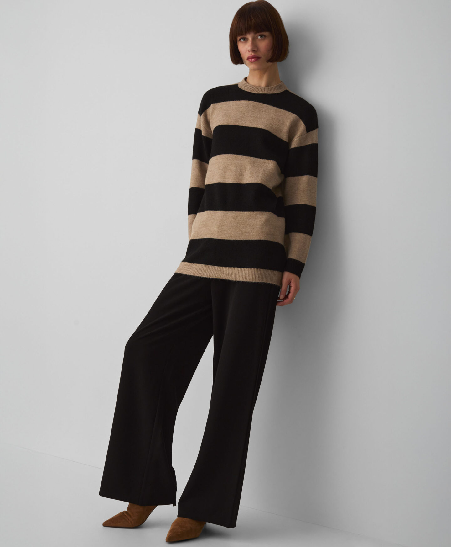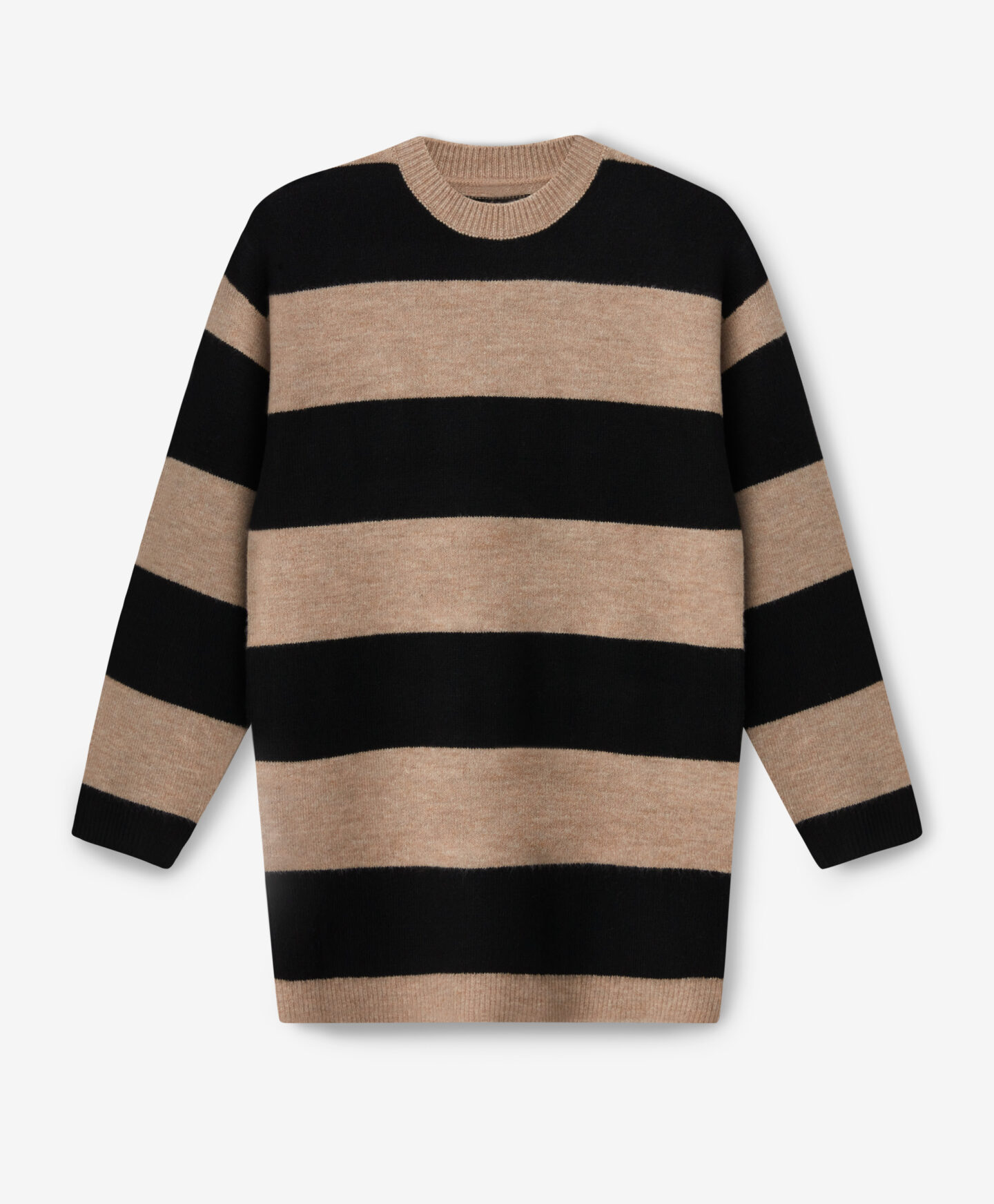 Dámská pruhovaná tunika dokonale doplní váš podzimní šatník. Je měkká, hřejivá a stylová. Bude vypadat skvěle s legínami nebo silnějšími punčocháči. V kombinaci s kozačkami po kolena nebo kotníkovými botami vytvoří outfit ideální na procházky, do kanceláře nebo na setkání s přáteli ve volném čase.