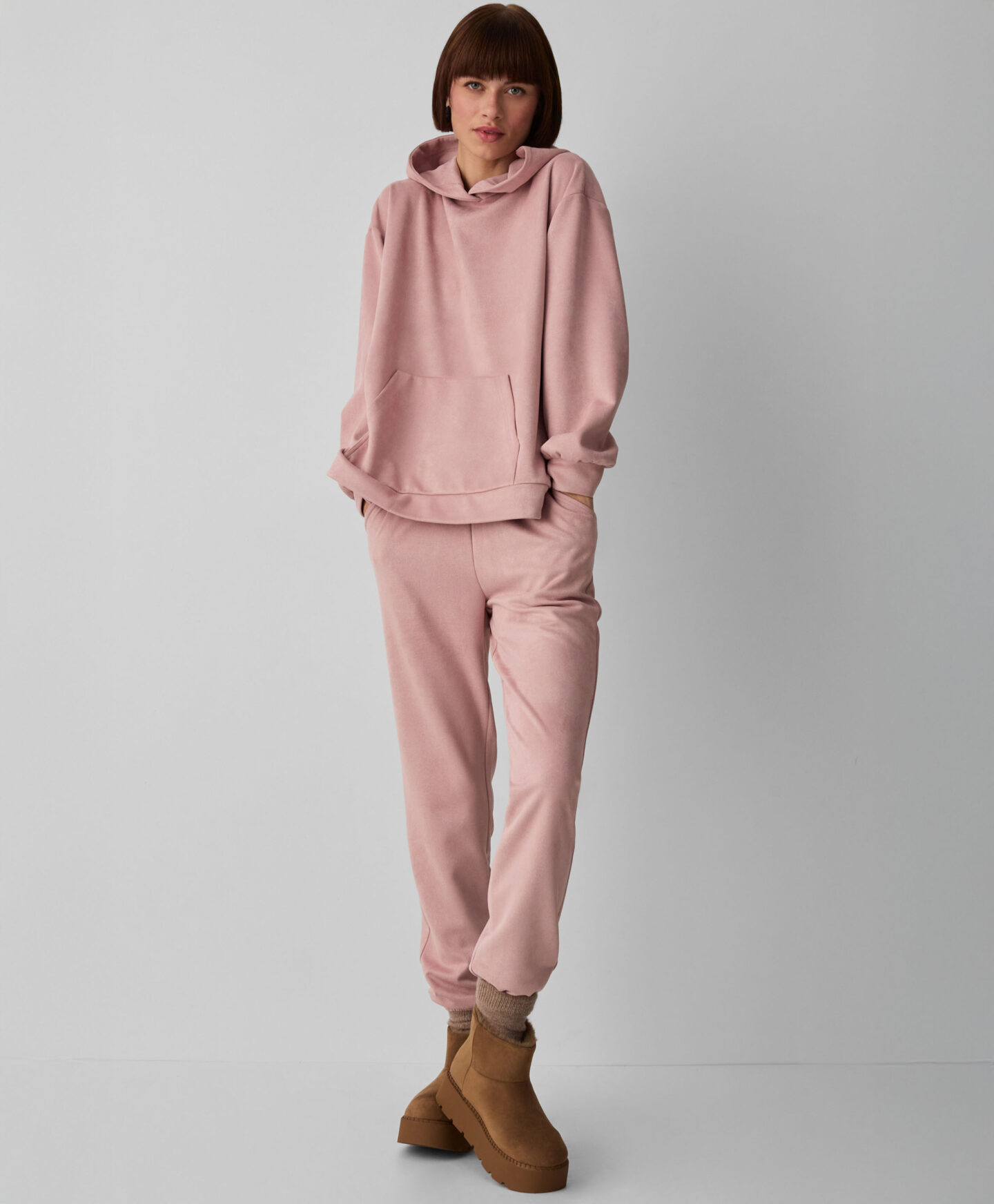 Dámská růžová semišová mikina s kapucí vám poskytne pohodlí a teplo v chladných dnech. Je nejen pohodlná, ale také stylová. Měkký materiál, promyšlený design a ženské barevné schéma z něj udělají vaši oblíbenou mikinu s kapucí na tento podzim! Perfektně se hodí k semišovým kalhotám z této kolekce. V prodejně najdete tuto mikinu s kapucí ve dvou barevných variantách.