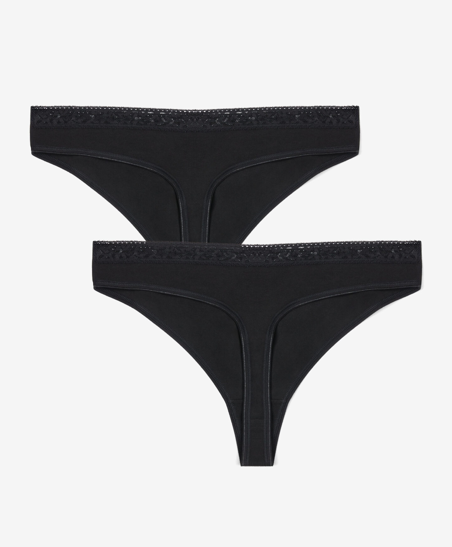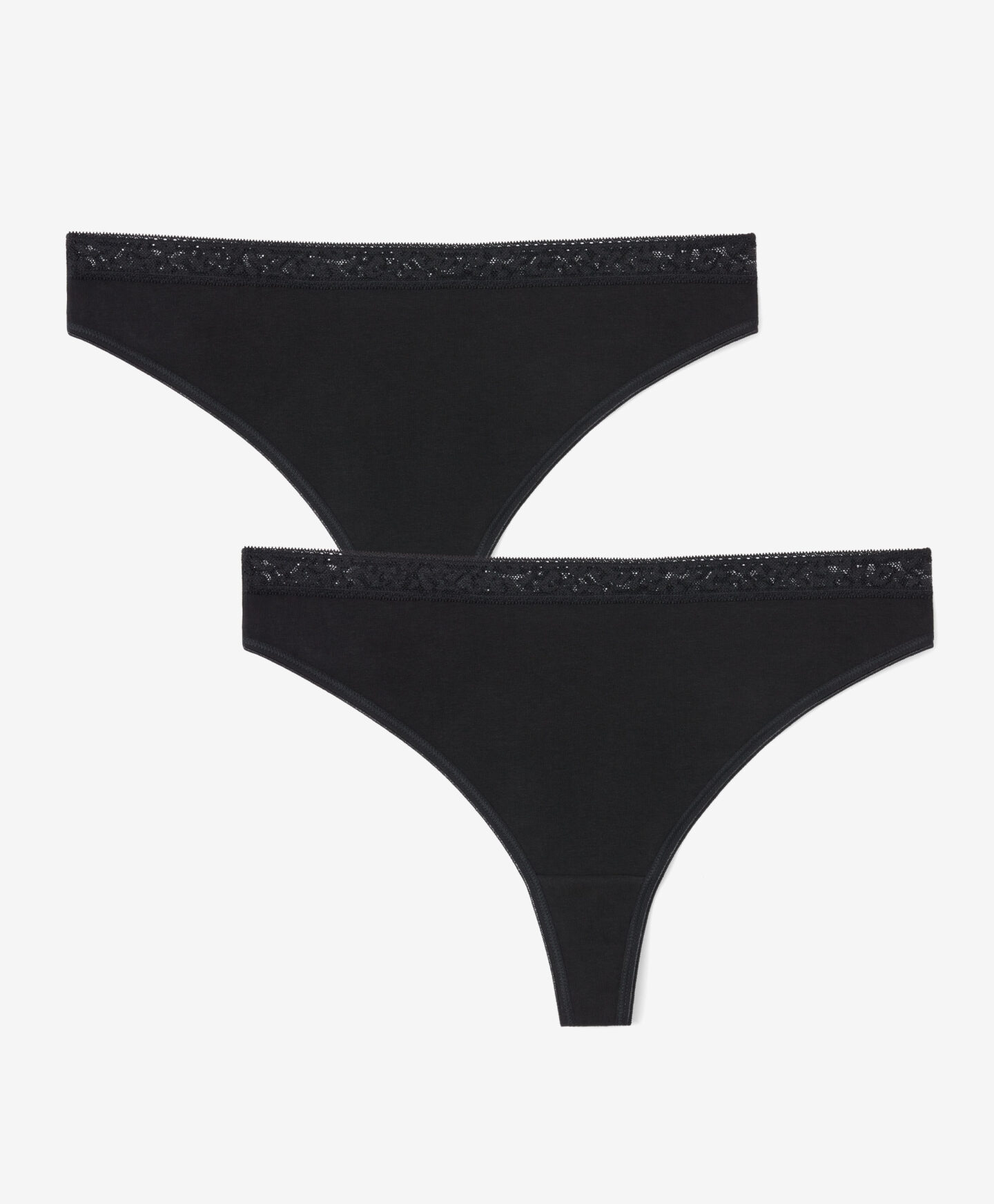 Dámská tanga 2 ks s krajkou jsou perfektní volbou na každodenní nošení. Vysoký podíl bavlny a přídavek elastanu zajišťují pohodlí. Mají vysoký střih a nejsou patrné pod oblečením. Měkká a příjemná látka na dotek dokonale přilne k tělu.