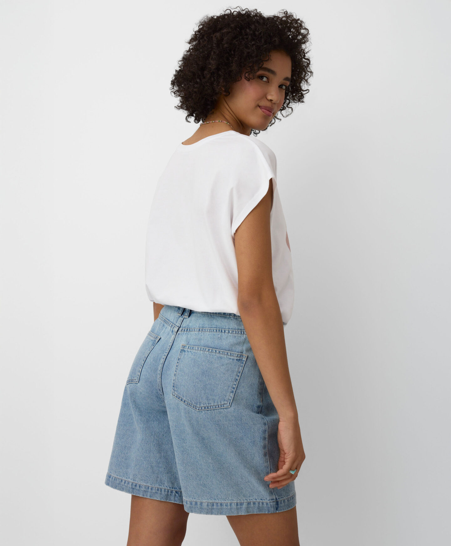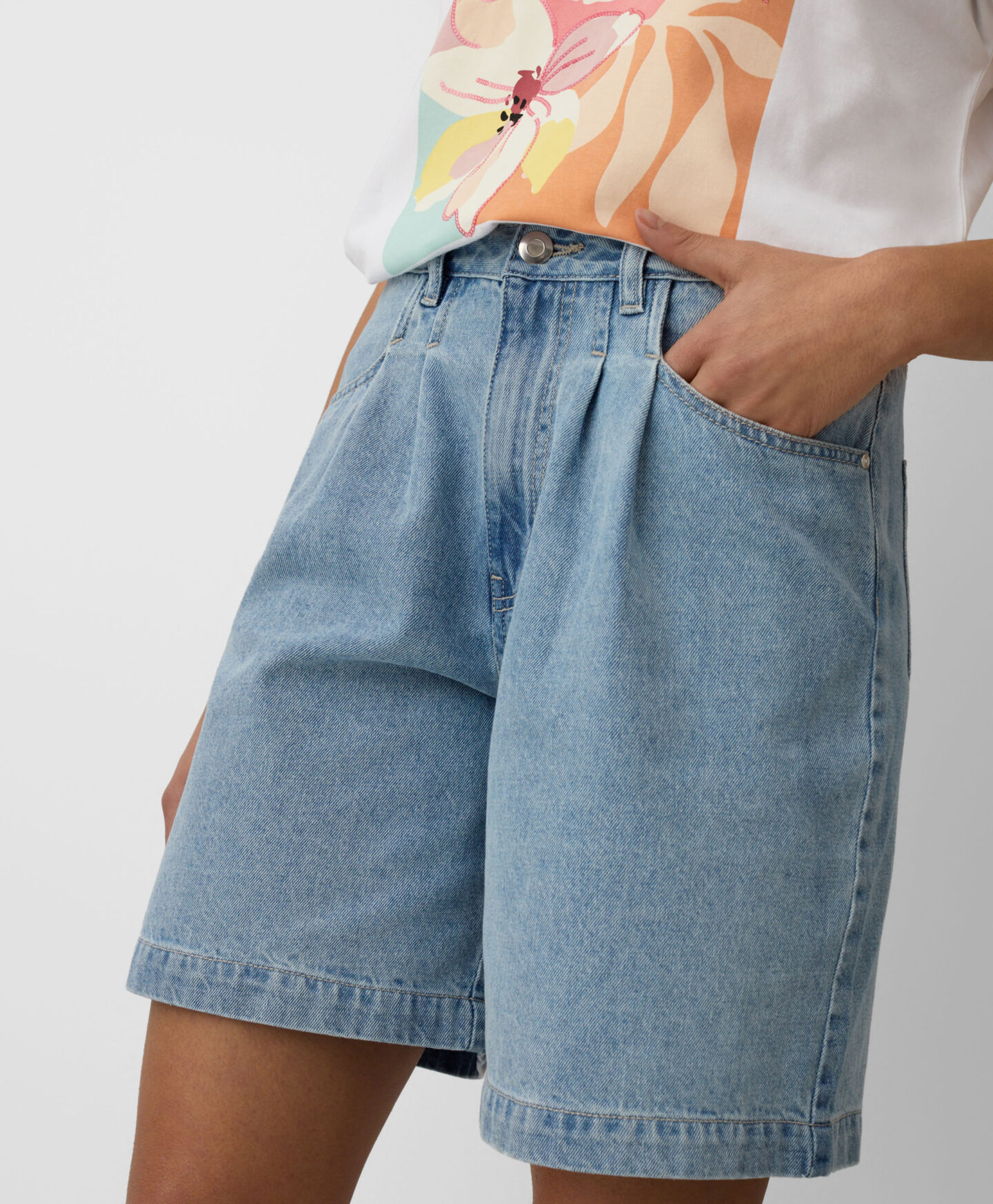 Tyto dámské bermudy ze 100% bavlny jsou perfektní volbou pro ženy, které hledají pohodlí a klasický styl v teplých dnech. Volný střih umožňuje naprostou svobodu pohybu a všestranná délka kalhot lichotí všem typům postavy. Nadčasový denim umožňuje naprostou flexibilitu stylingu.