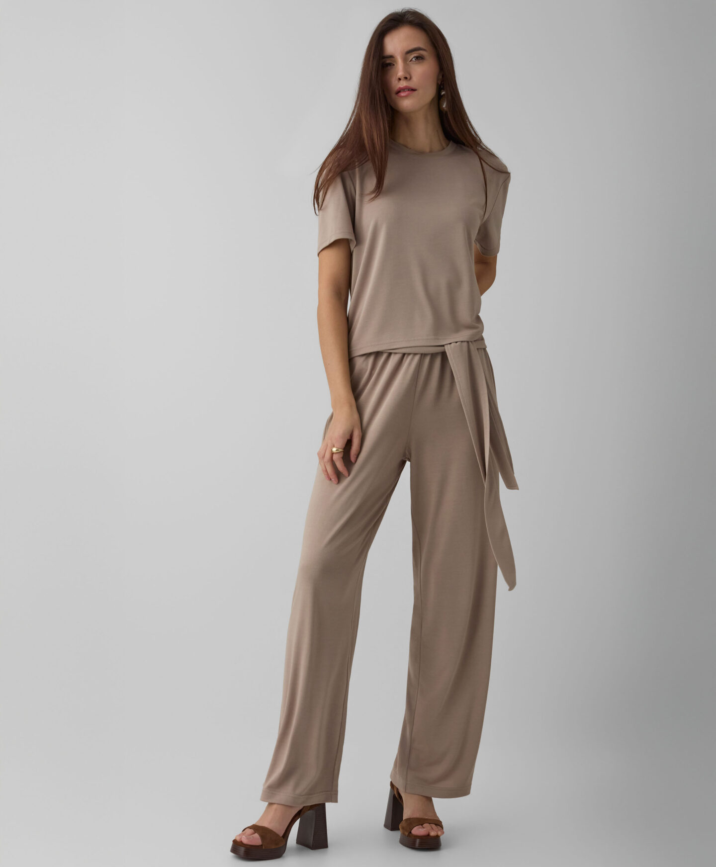 Dámské béžové triko s krátkým rukávem tvoří soupravu s kalhotami s vázáním v pase, ale bude se krásně hodit k většině oblečení ve vašem šatníku. To vše díky klasickému střihu a nadčasové barvě, které nikdy nevyjdou z módy. Lehký materiál s viskózou je lehký a příjemný na dotek. Tričko vám zaručí pohodlí během celého dne nošení. V nabídce je na výběr několik barev.
