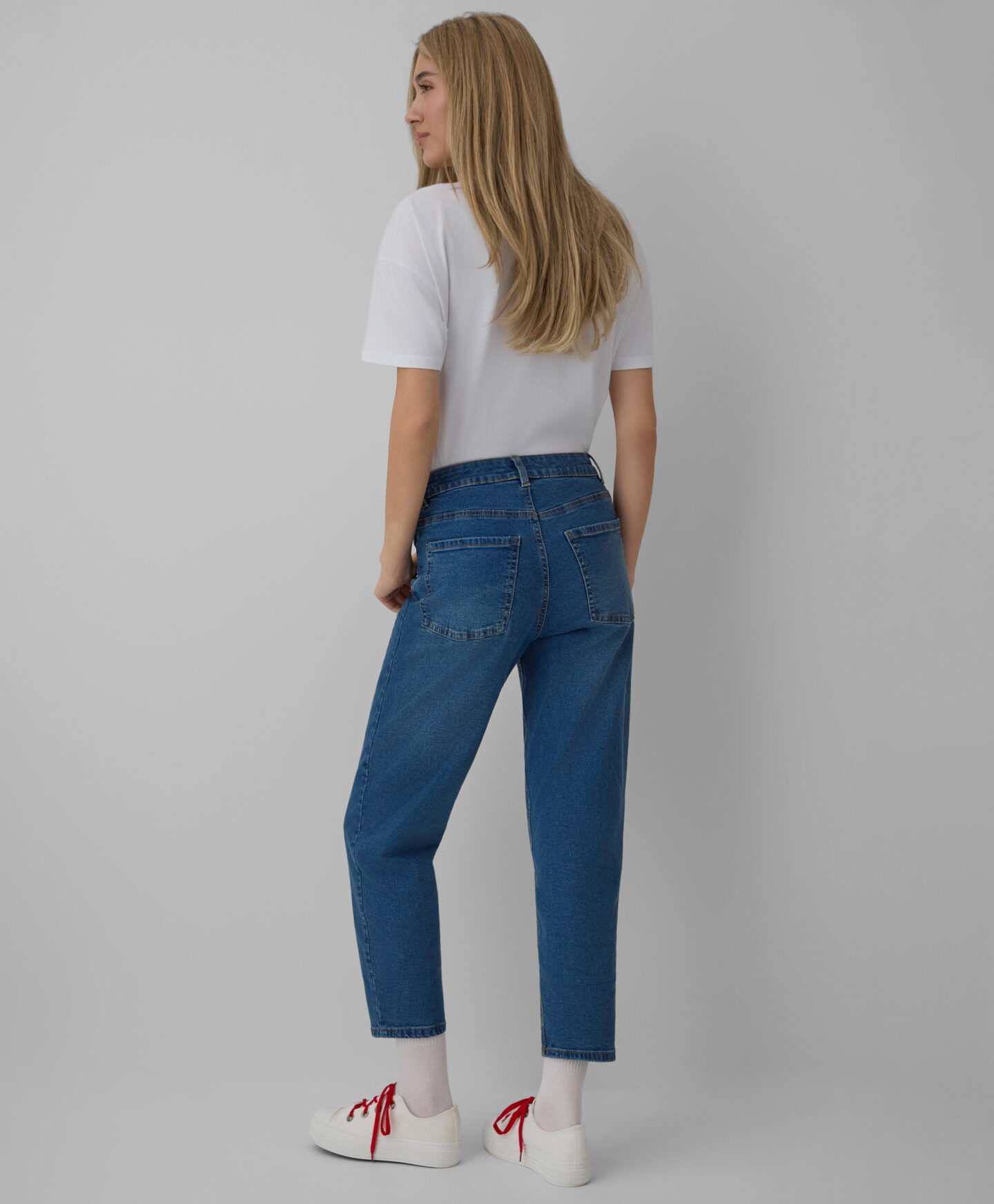 Dámské džíny mom-fit jsou nadčasovou klasikou, která kombinuje retro styl s moderním nádechem. Mají vysoký pas, který jej zvýrazňuje a zároveň poskytuje pohodlí. Mírně volnější střih kalhot jim dodává ležérní vzhled a umožňuje svobodu pohybu.