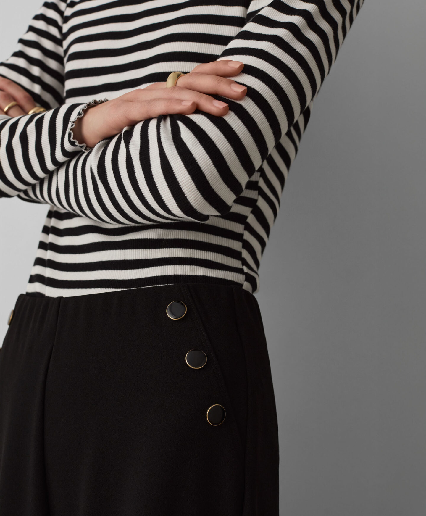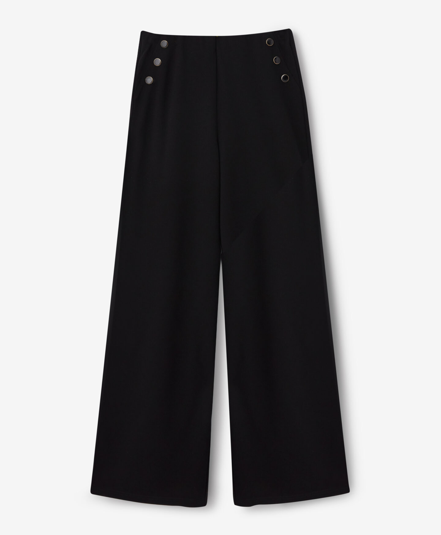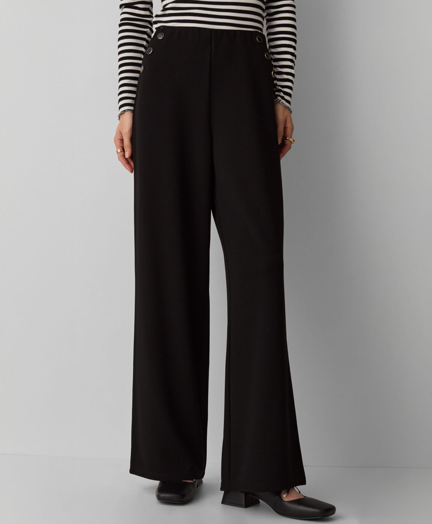 Dámské kalhoty s knoflíčky a širokými nohavicemi vám umožní zapůsobit v kanceláři i na formálnějších setkáních. Jsou pohodlné, lehké a příjemné na nošení. Ozdobné knoflíky upoutají pozornost a jsou módním doplňkem každého outfitu. Široké nohavice nabízí volnost pohybu.