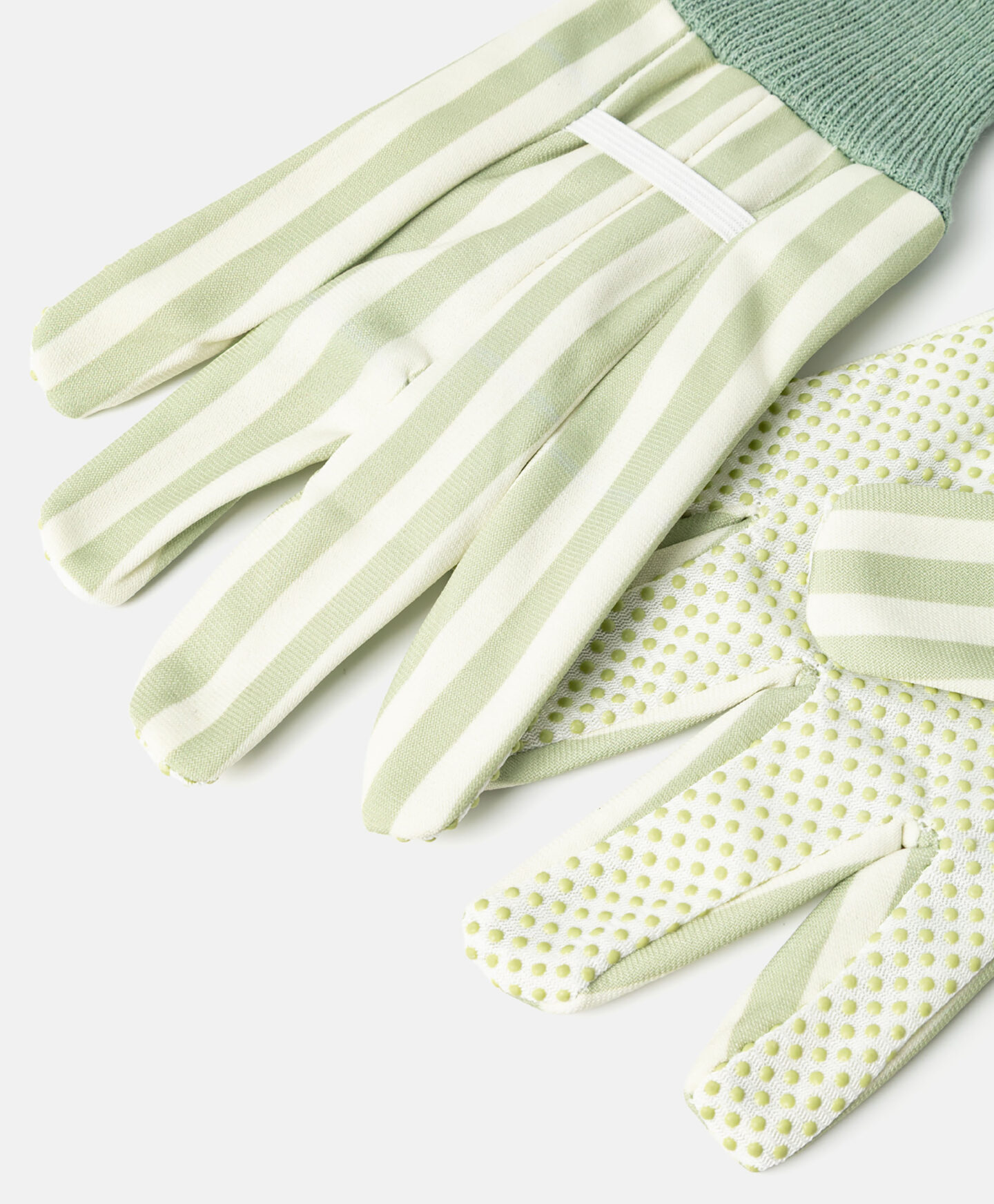 Dámské pruhované zahradní rukavice jsou nepostradatelným doplňkem každé ženy, která pracuje na zahradě a zároveň dbá na bezpečnost jemné pokožky na rukou. Poskytují vynikající přizpůsobení, pohodlí a svobodu pohybu během práce. Vyrobené z odolných materiálů chrání před trny a nečistotami a texturovaný povrch umožňuje pevný úchop zahradního nářadí. Snadno se udržují v čistotě. V nabídce jsou dostupné i jiné vzory.
