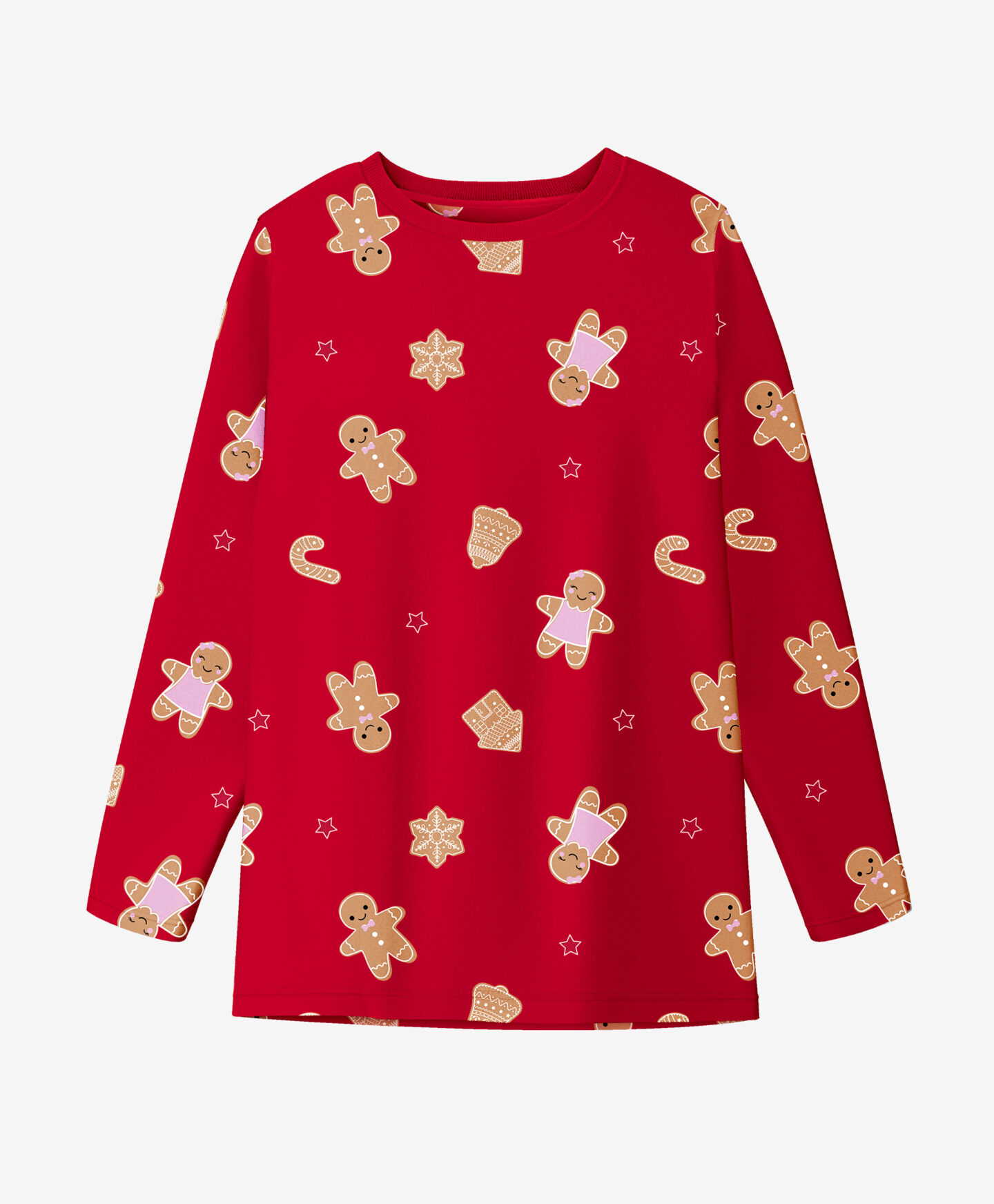Dámské pyžamo se vzorem perníkové chaloupky, vyrobené ze 100% bavlny, je měkké na dotek. Souprava se skládá z košile s dlouhým rukávem a dlouhých kalhot, díky čemuž je ideální na zimní noci. Měkká a prodyšná tkanina se postará o vaše pohodlí každou noc. Takové pyžamo je skvělým dárkem pro milovníky vánoční atmosféry.