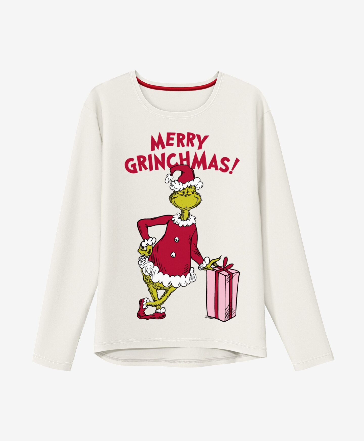 Dámské pyžamo s licencí Grinch, vyrobené ze 100% bavlny, sestává z trička s dlouhým rukávem s podobiznou ikonické zelené postavičky na přední straně a kalhot s vánočním vzorem. Vyrobené z přírodních vláken, zajistí vám pohodlný spánek během podzimních a zimních nocí. Pyžamo bude také dobrým nápadem na dárek pro každého, kdo si cení relaxace v pohodlí domova.