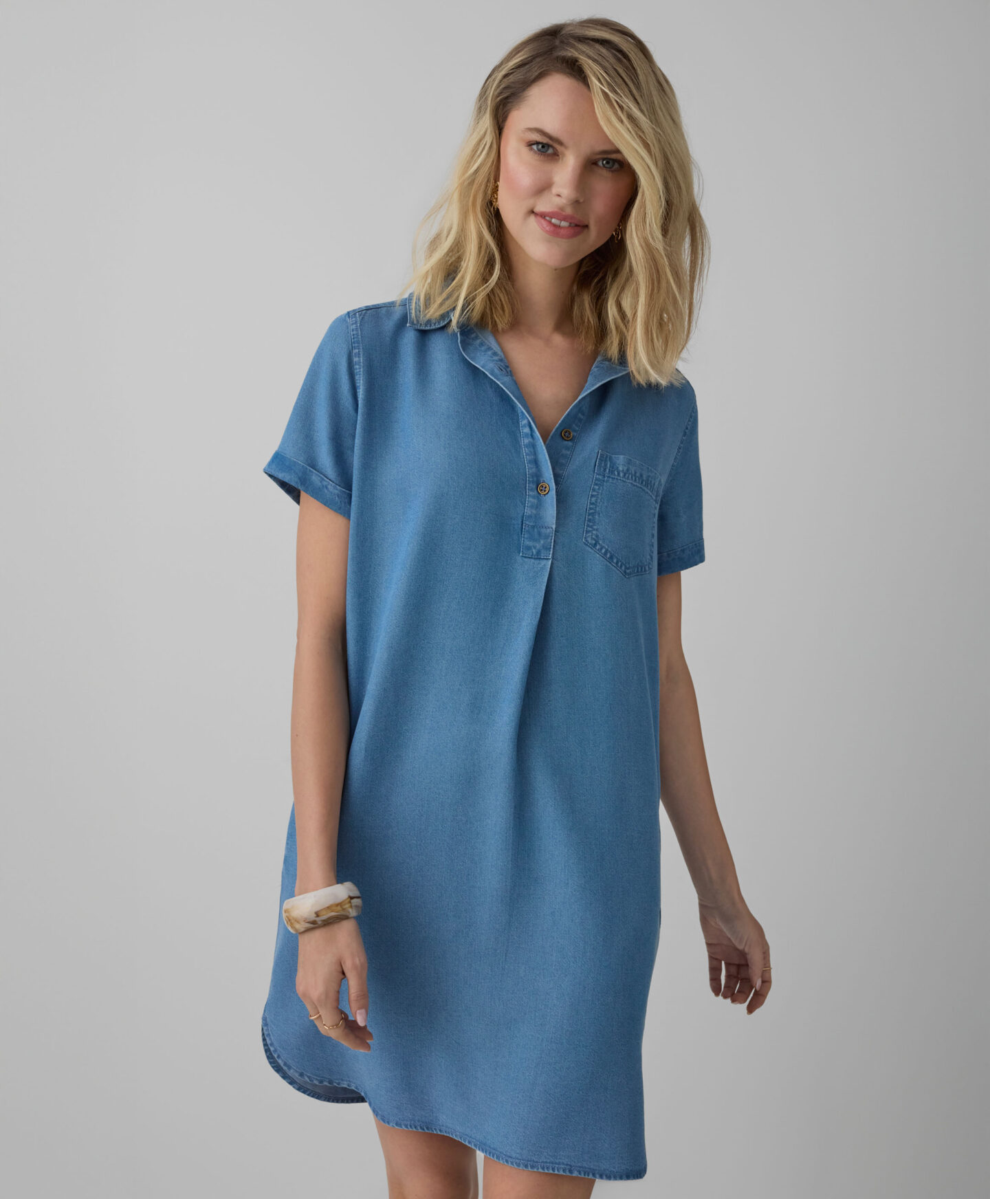 Dámské šaty ze 100% lyocellu jsou pohodlným doplňkem pro každý den. Díky límci jsou šaty vhodné na mnoho příležitostí – od práce až po společenská setkání. Měkká, příjemná tkanina nedráždí pokožku a zajišťuje bezkonkurenční pohodlí při nošení. Lyocell je lehký, prodyšný a přizpůsobuje se tělesné teplotě. Univerzální střih opticky zeštíhluje postavu a přizpůsobí se různým typům postavy. Šaty se snadno udržují, jsou odolné vůči praní a žehlení.