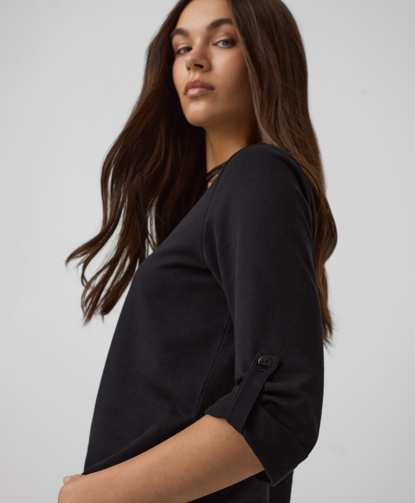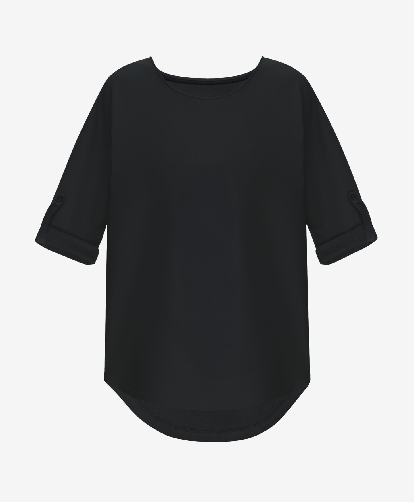 Dámské tričko s kulatým spodním dílem a ohrnutými rukávy je ideální volbou pro ženy, které si cení elegance a pohodlí. Díky svému jedinečnému střihu dodá šarm každému outfitu a zvýrazní váš individuální styl. Díky vysokému podílu bavlny je tričko prodyšné a příjemné na dotek.