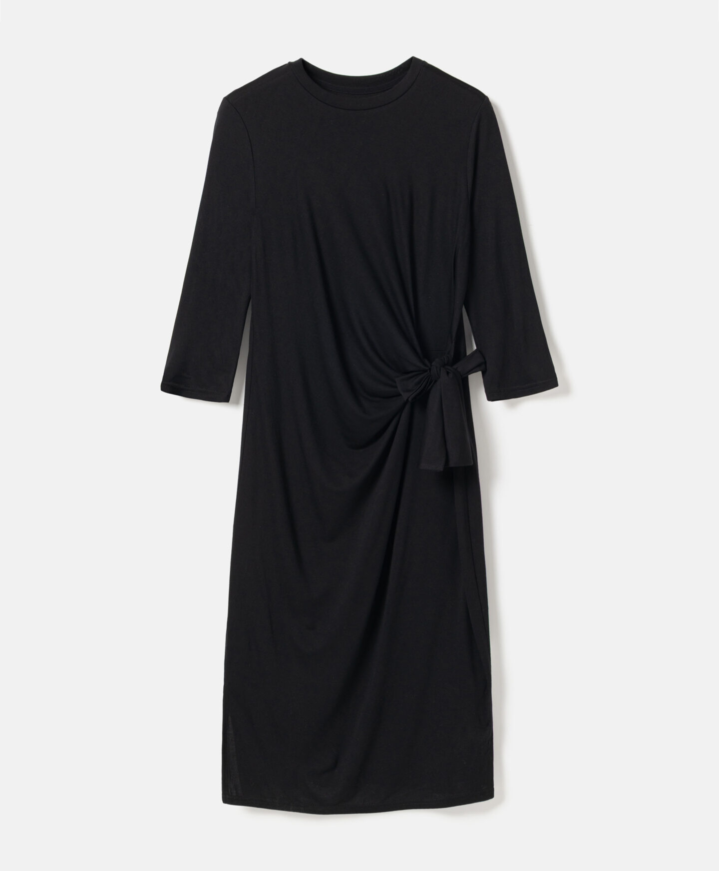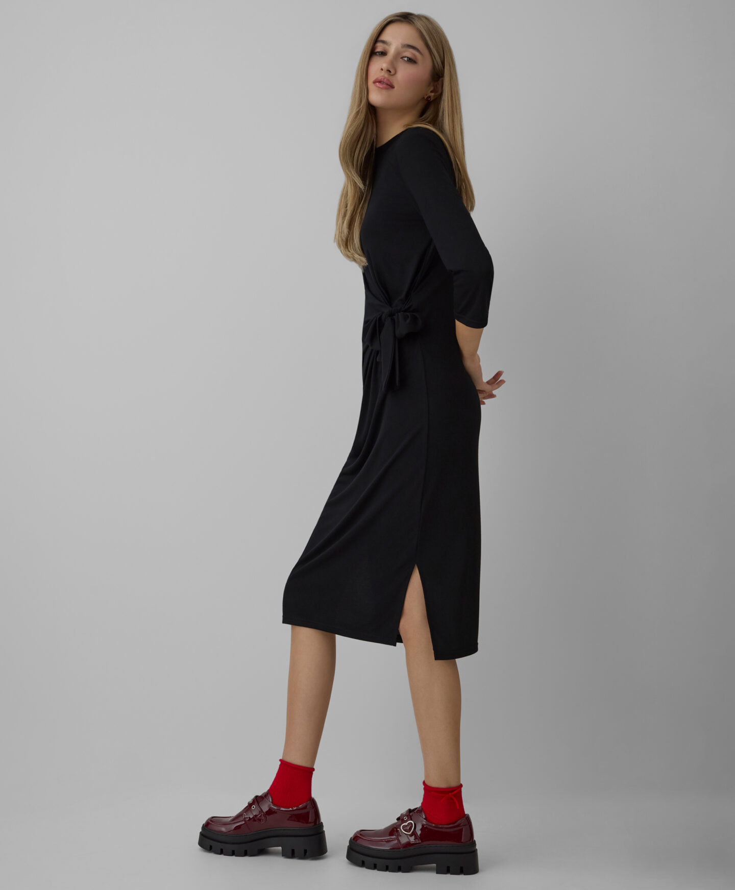 Dámské šaty s vázáním, vyrobené z látky s přídavkem viskózy, jsou skvělou volbou pro speciální příležitosti. Klasická černá barva dodá eleganci každému outfitu. Šaty jsou měkké na dotek a krásně zvýrazňují postavu. Můžete je zkombinovat s elegantními vysokými podpatky i s kozačkami na plochém podpatku.