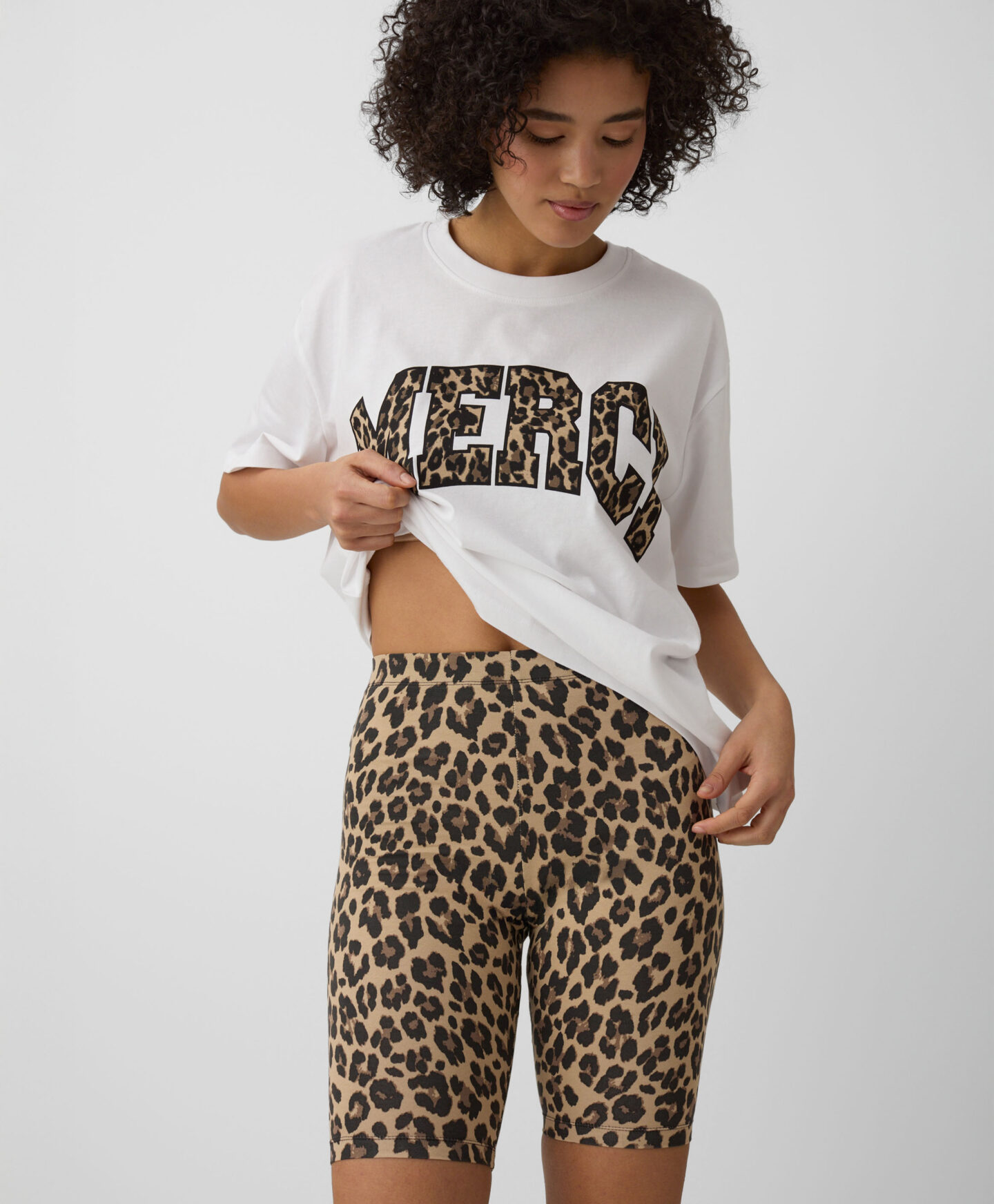 Tyto dámské šortky s leopardím vzorem, vyrobené s vysokým podílem bavlny, jsou ideální pro ženy, které rády experimentují se stylem a vyjadřují svoji osobnost prostřednictvím módy. Elastan zajišťuje pohodlí při nošení. Přiléhavý střih tvaruje postavu a vysoký pas opticky prodlužuje nohy, čímž zajišťuje maximální pohodlí a svobodu pohybu. Zkombinujte je s oversize tričkem nebo mikinou pro módní a sportovní vzhled.