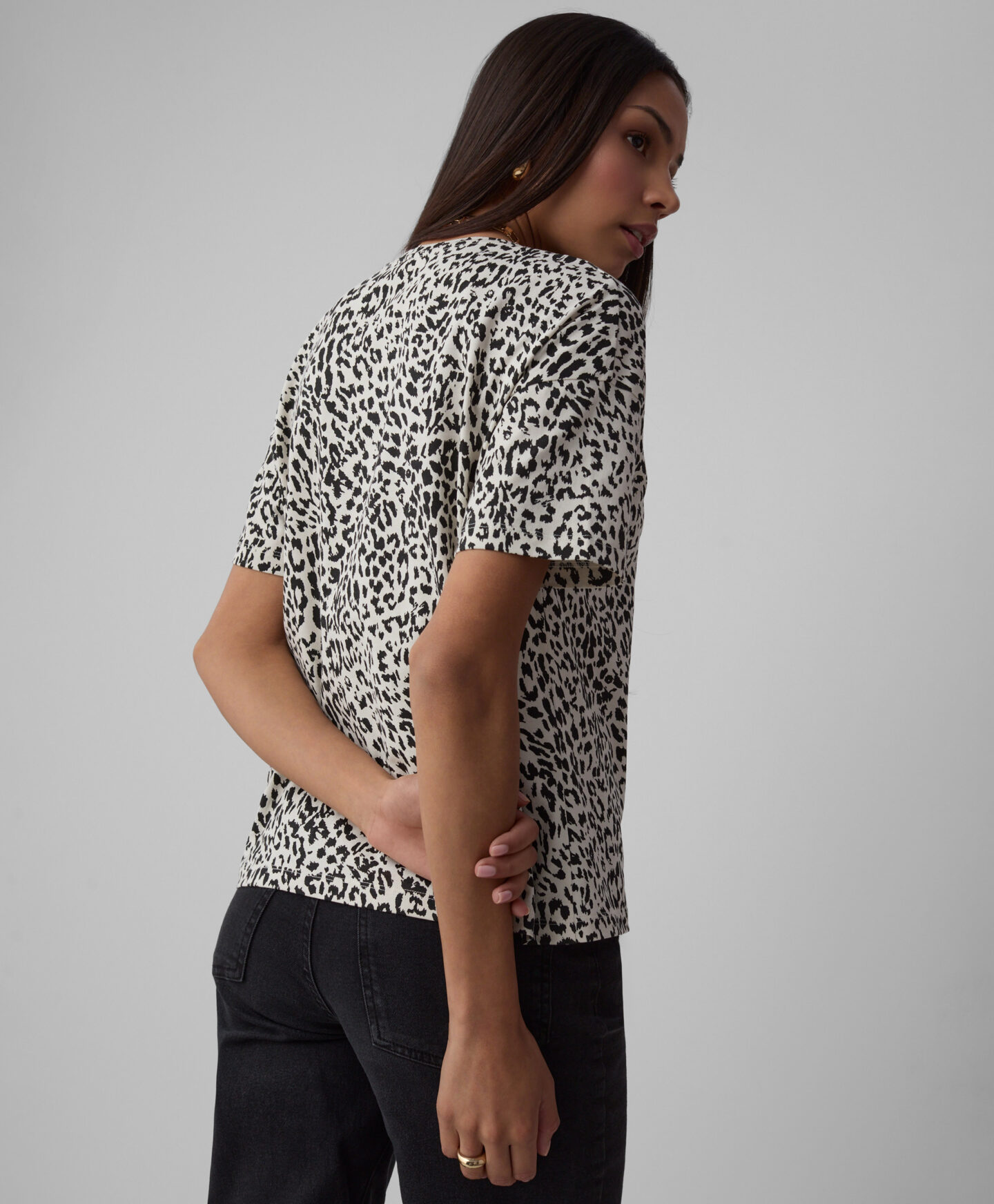 Dámské tričko s puntíkovaným vzorem, vyrobené ze 100% bavlny, je měkké, prodyšné a příjemné na dotek. Přírodní materiál poskytuje pohodlí během celého dne a je ideální pro celoroční nošení. Vhodné pro nošení pod kardigan, sako nebo mikinu během chladnějších období.