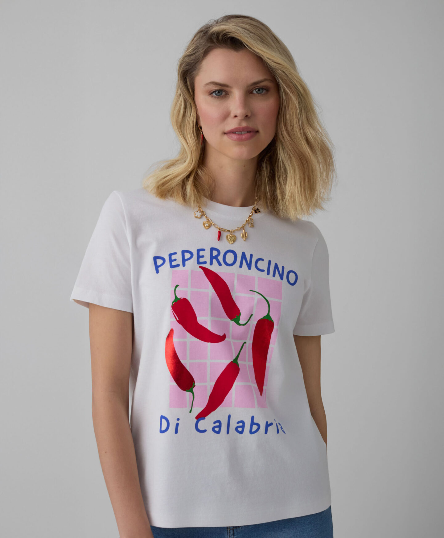 Dámské tričko ze 100% bavlny s potiskem chilli papriček upoutá pozornost. Lehký a prodyšný materiál vám umožní pohodlně jej nosit samostatně nebo ve vrstvených outfitech. Přehoďte si přes tričko halenku, pulovr nebo džínovou bundu a vytvořte si outfity vhodné pro mnoho příležitostí.