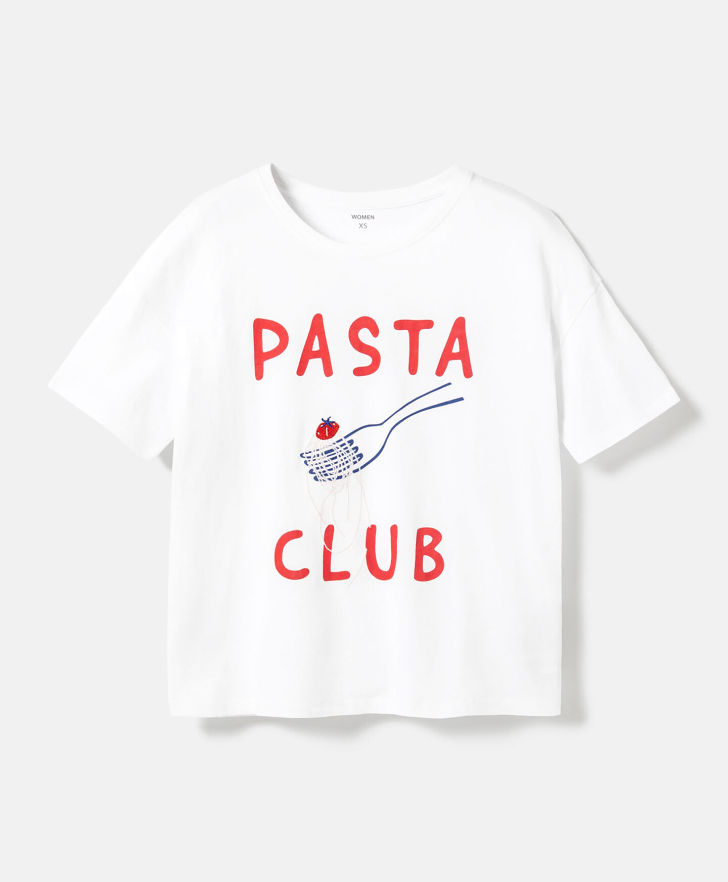 Dámské tričko ze 100% bavlny s potiskem těstovin je něco pro dámy, které mají chuť na kreativní styling! Potisk na přední straně upoutá pozornost a odliší tričko od ostatních. V kombinaci s klasickými džínami vytváří univerzální outfit ideální na setkání s přáteli, každodenní nakupování nebo procházky se psem.