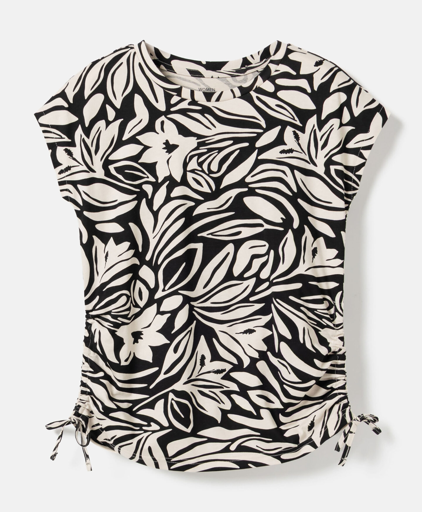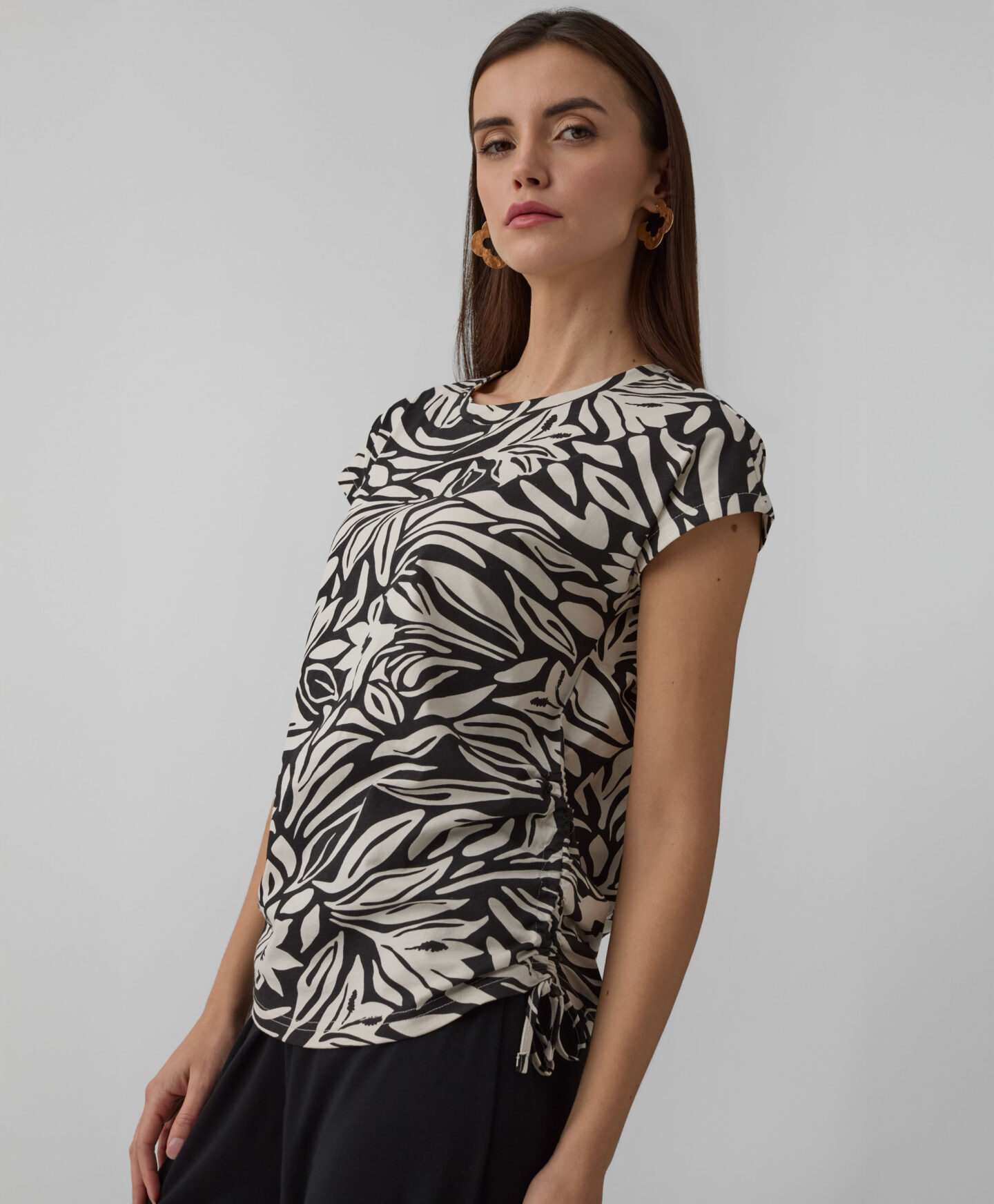 Dámské tričko ze 100% bavlny je nezbytností ve vašem šatníku. Vázání je trendy prvkem, který dodává každému outfitu ženskost a jedinečný charakter. Měkká a prodyšná tkanina zajišťuje pohodlí během celého dne, v každém ročním období. Tričko se krásně hodí k ležérním džínům i k formálnějším kouskům, jako jsou elegantní kalhoty a sukně.