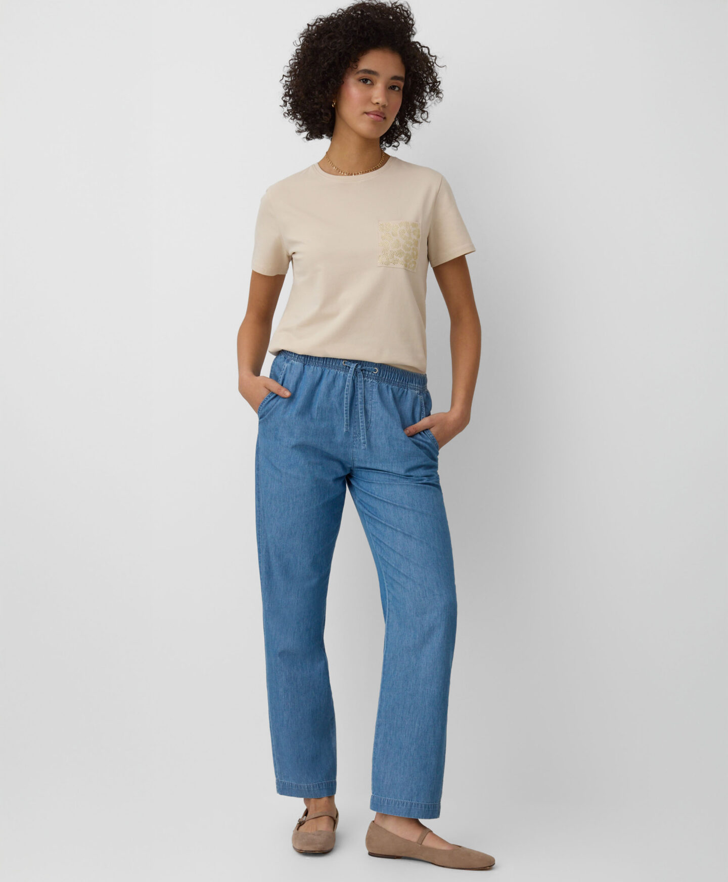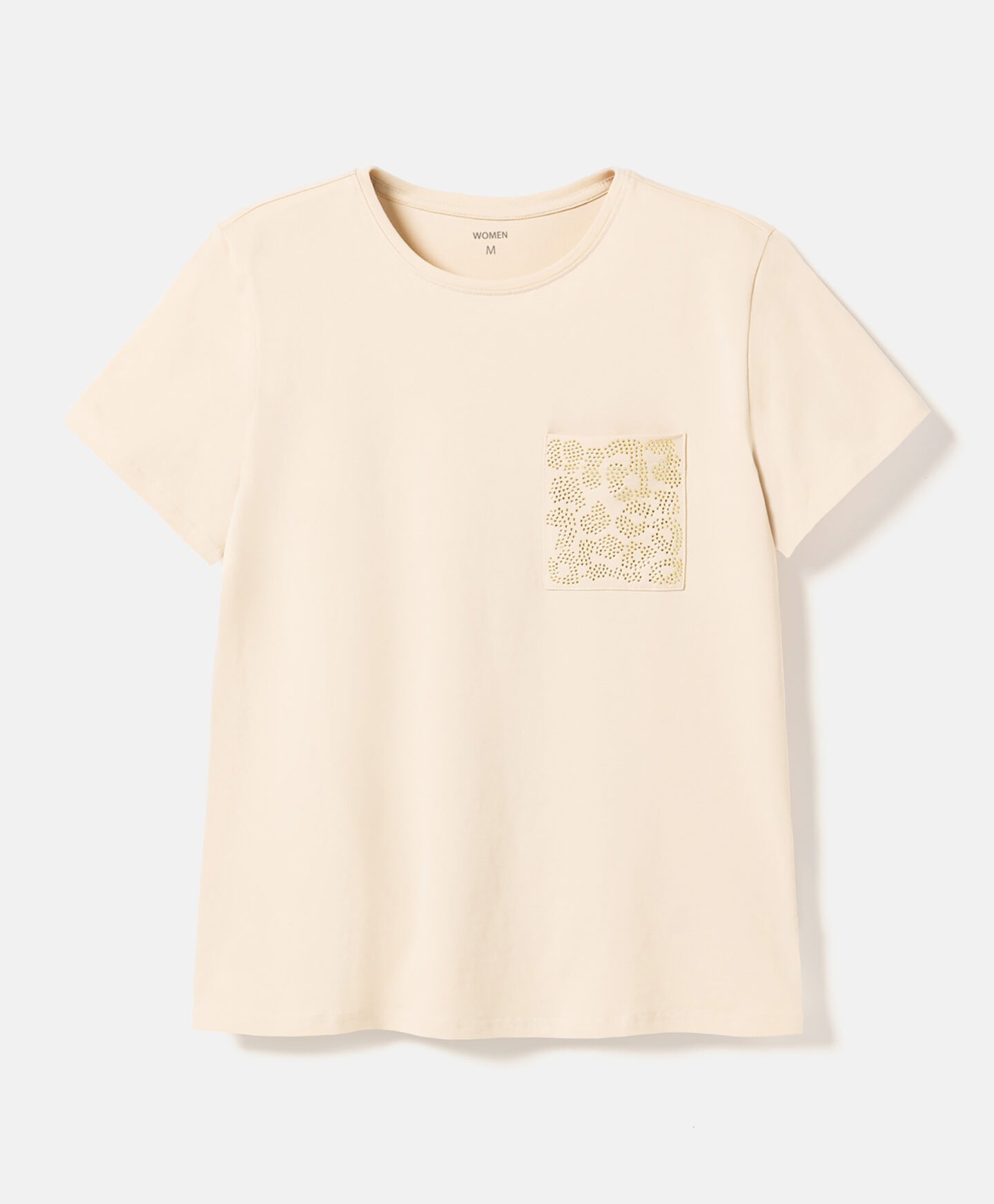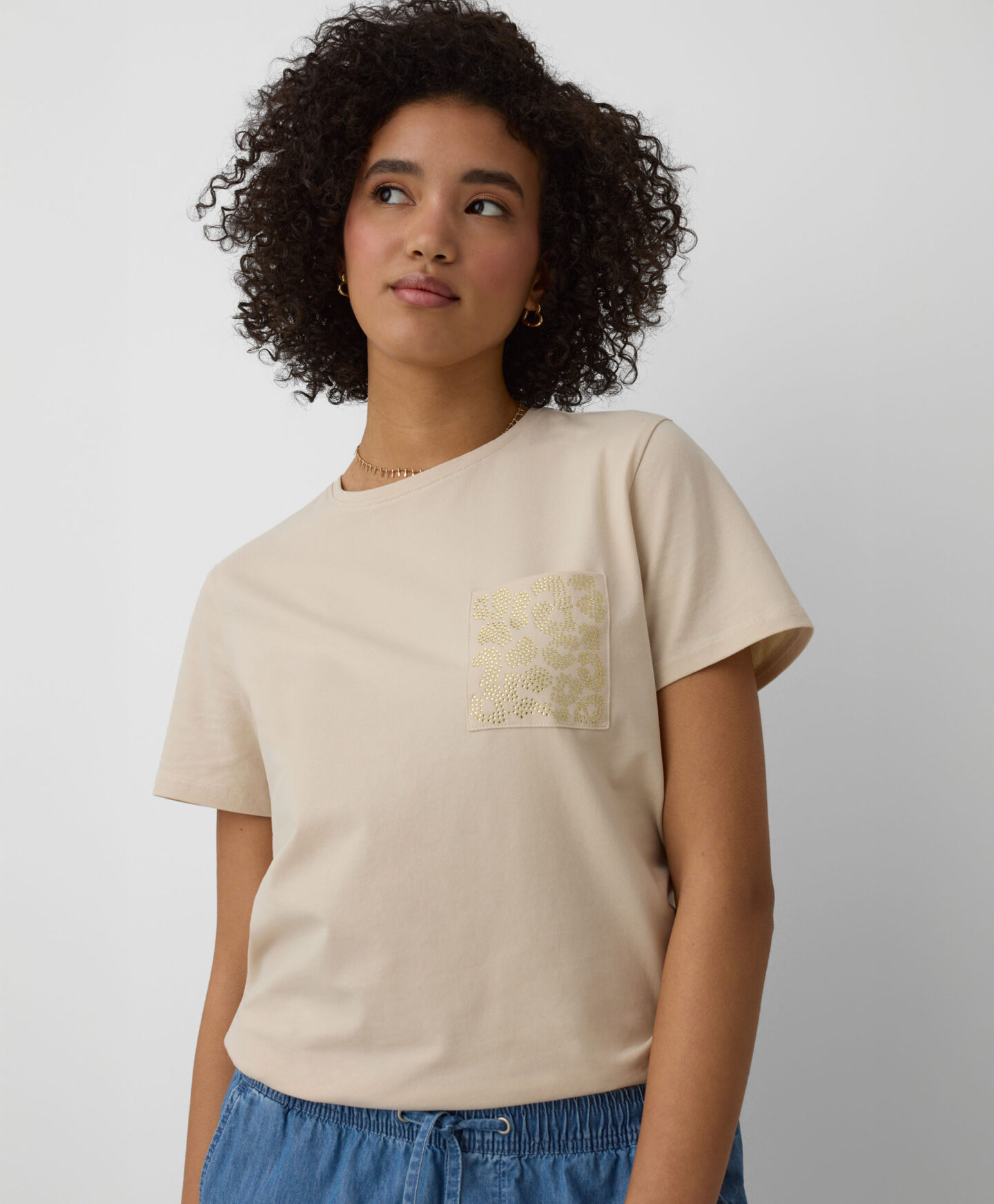 Dámské tričko ze 100% bavlny s ozdobnou kapsou je perfektní volbou na každý den. Jeho klasický střih a tlumené barvy z něj dělají perfektní základ pro mnoho úspěšných outfitů. Je pohodlné, vzdušné a umožňuje pokožce dýchat. Ideálně se hodí k vašim oblíbeným džínám, teplákům nebo elegantním kalhotám.