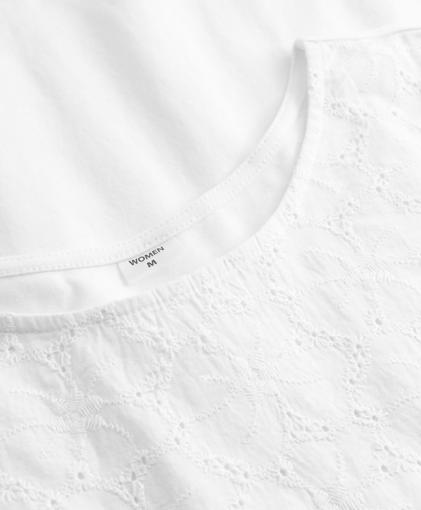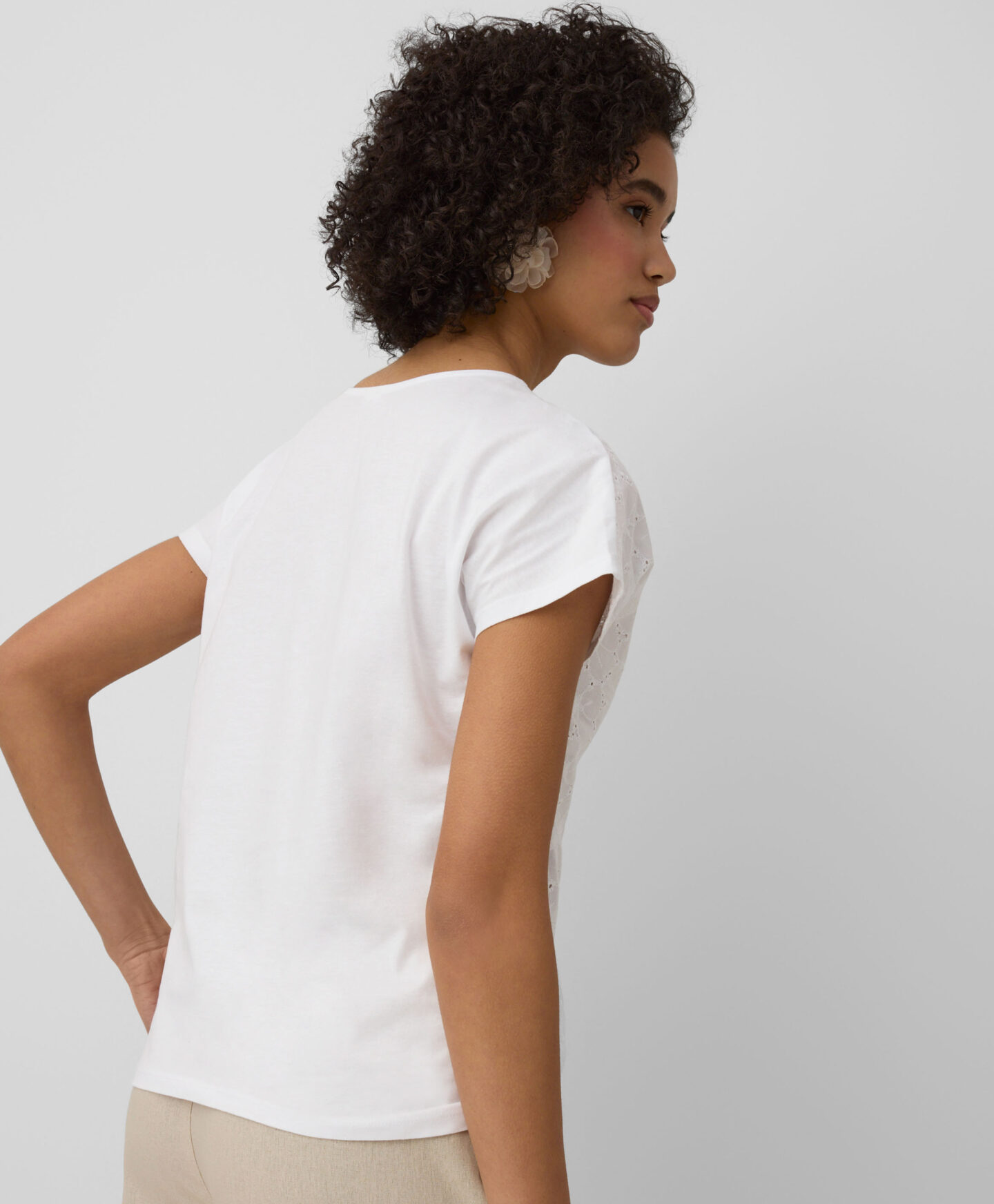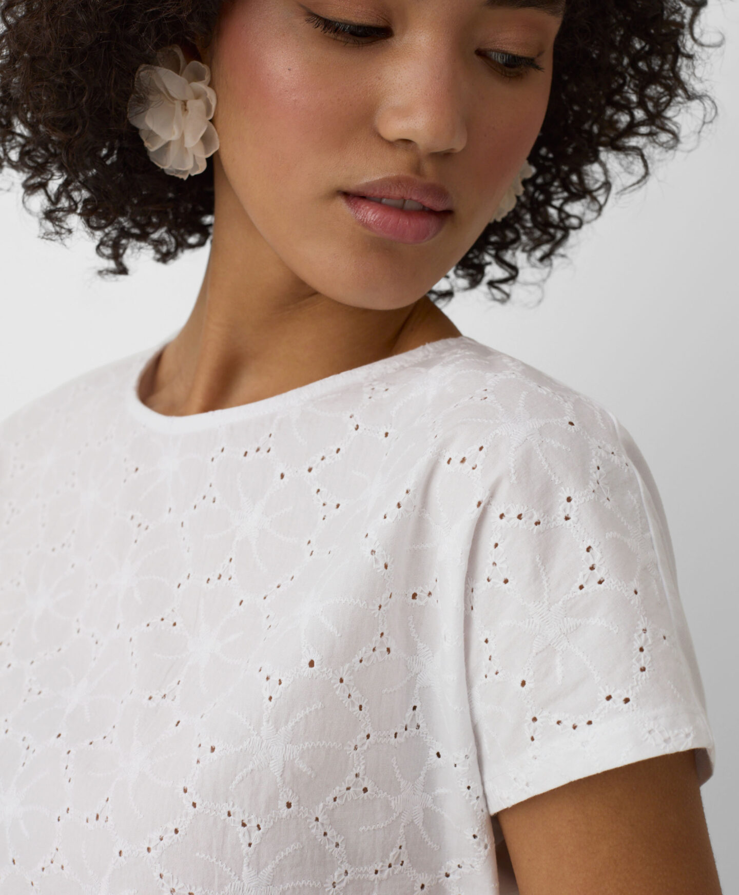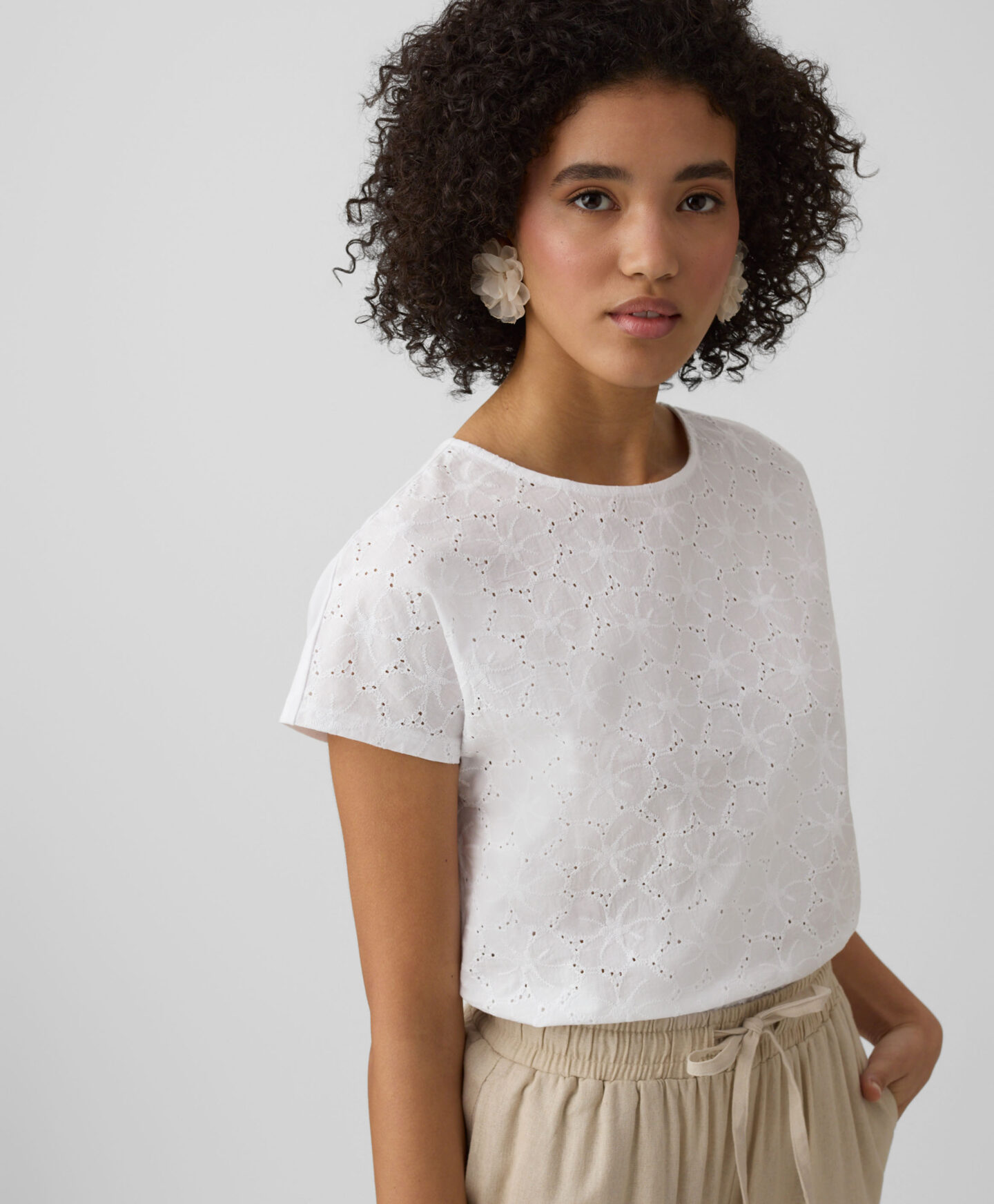 Toto dámské tričko ze 100% bavlny s výšivkou na přední straně umožňuje pokožce dýchat. Je pohodlné a lichotí postavě. Klasický střih a tlumené barvy z něj dělají perfektní základ pro mnoho úspěšných outfitů. Ideálně se hodí k vašim oblíbeným džínám, šortkám nebo elegantním kalhotám.