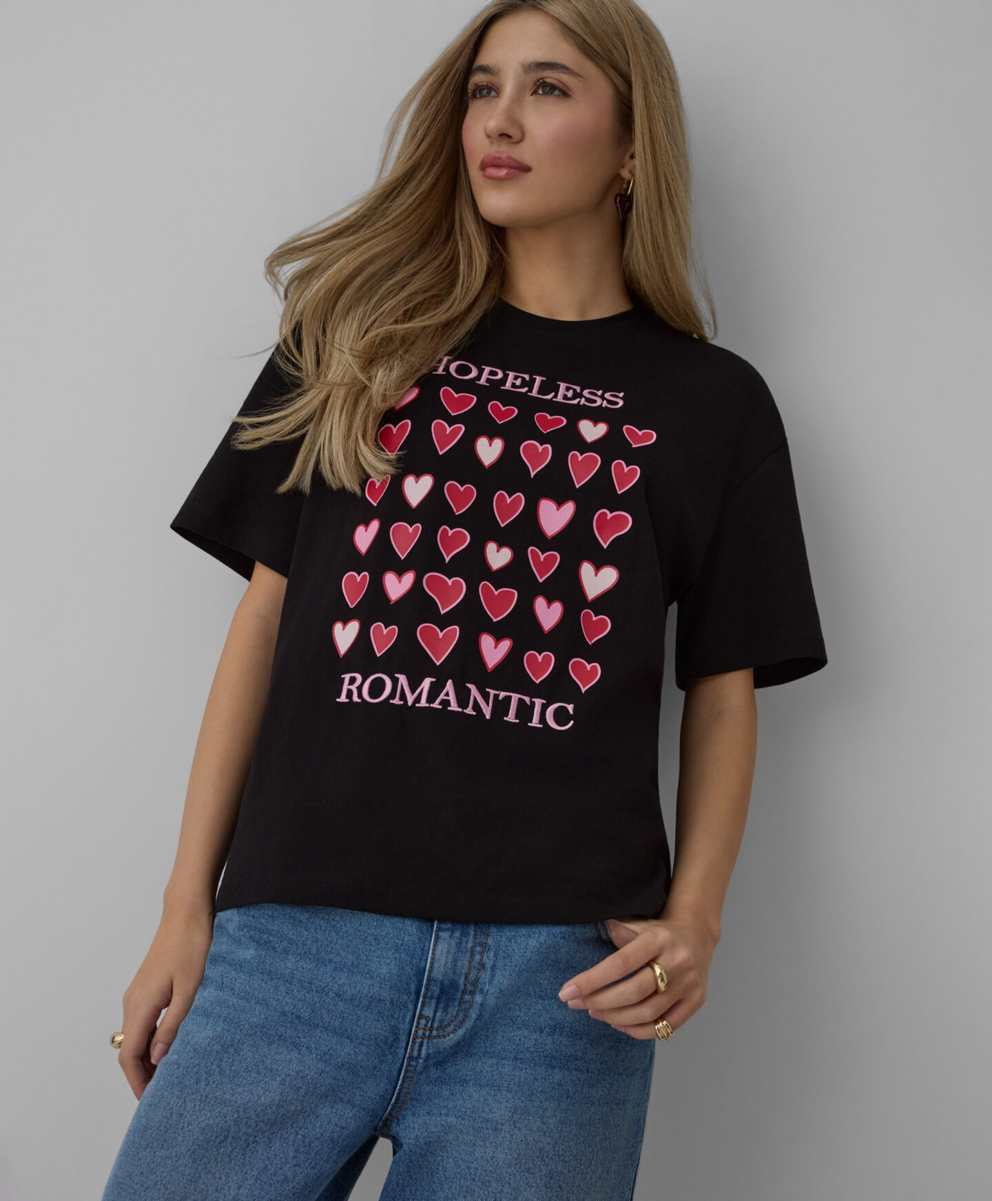 Dámské tričko s krátkým rukávem a srdíčky, vyrobené ze 100% bavlny, je outfit, který si zamilují milovnice klasického stylu. Okouzlující potisk srdce na přední straně dodá šarm každému outfitu. Tričko je lehké, měkké na dotek a jemné k pokožce.