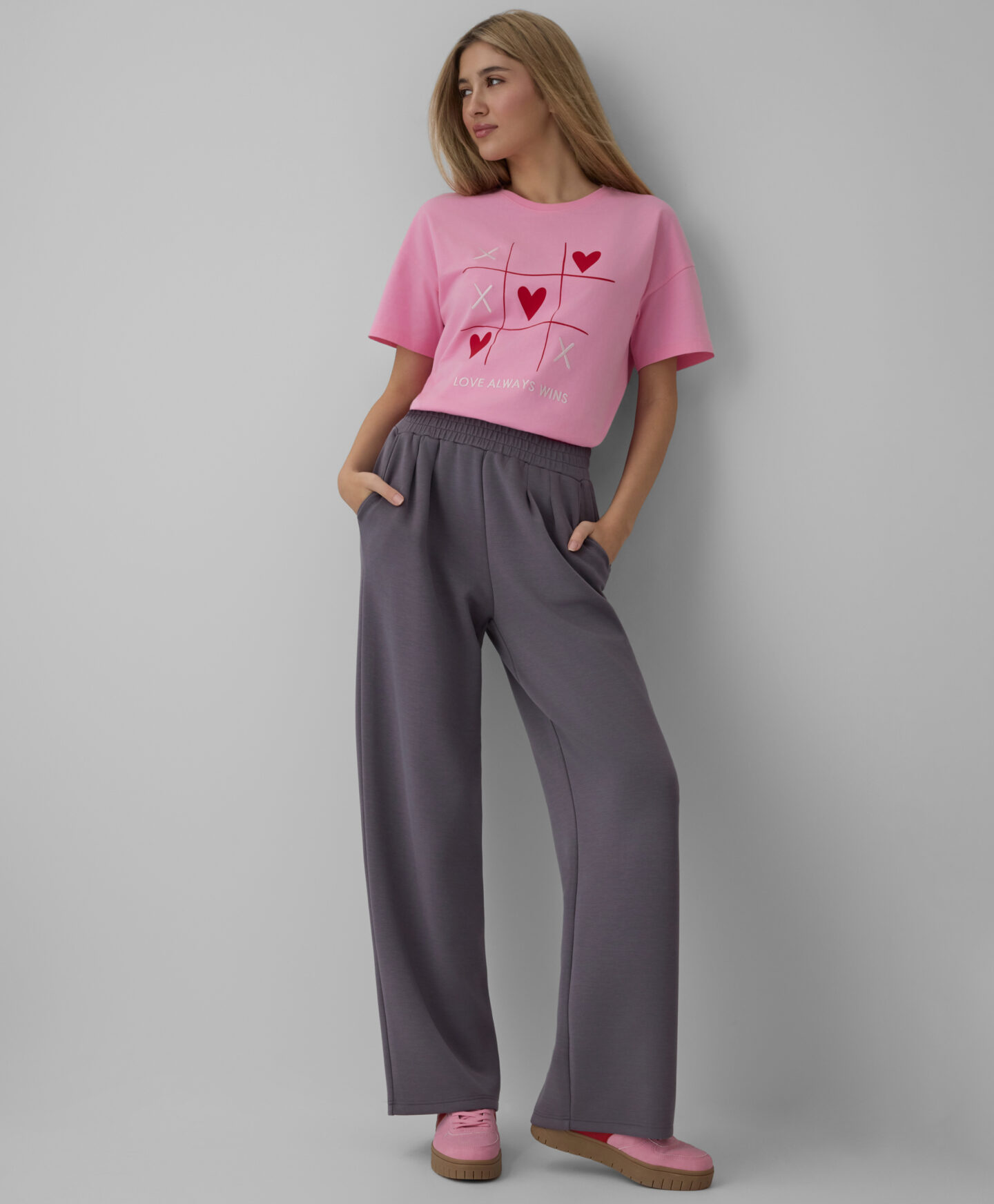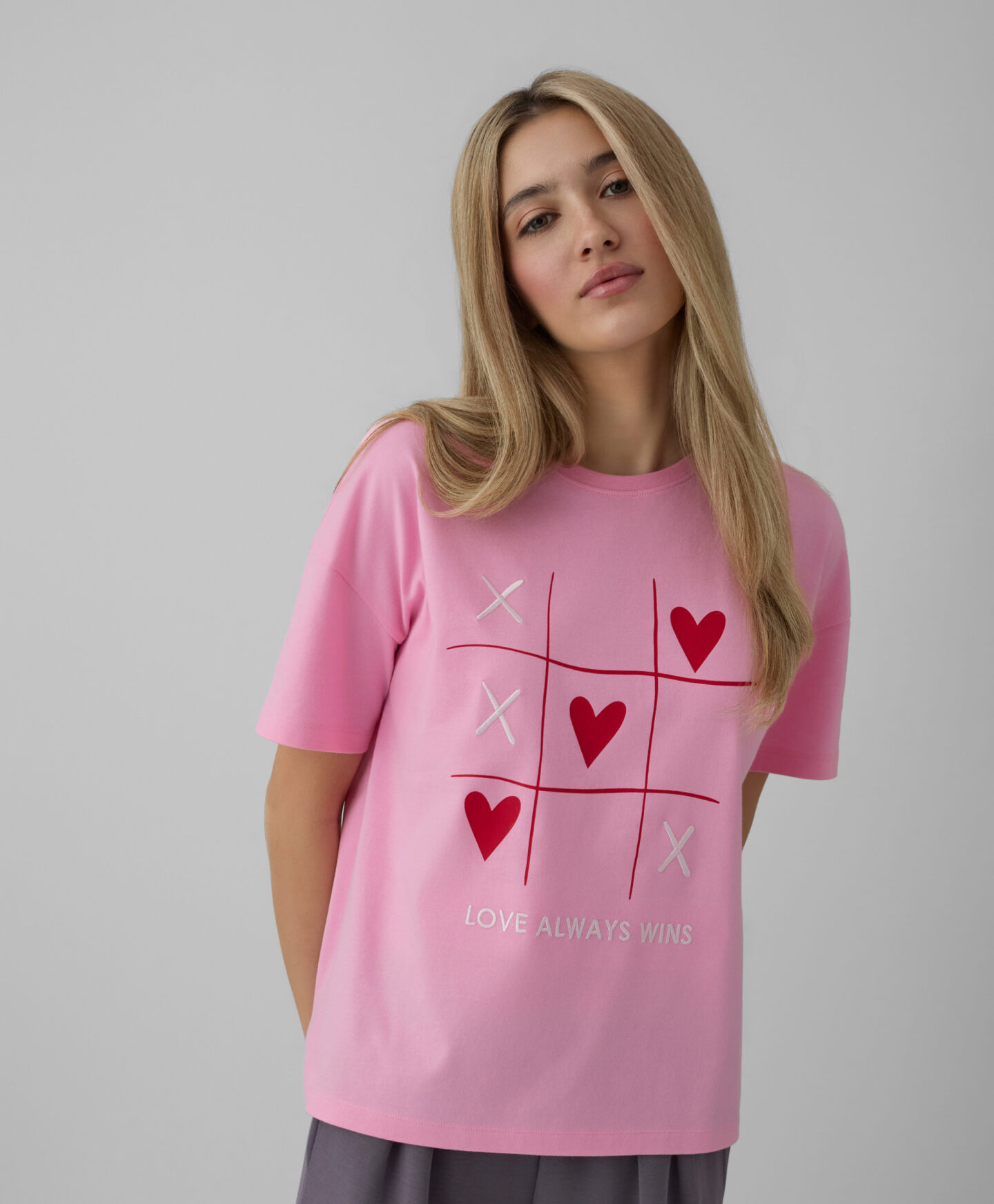 Dámské tričko s krátkým rukávem a srdíčky, vyrobené ze 100% bavlny, je skvělou volbou na každodenní nošení. Tričko je velmi všestranné. Měkká a prodyšná tkanina poskytuje pohodlí při nošení a okouzlující vzor srdce dodává každému outfitu romantický nádech.