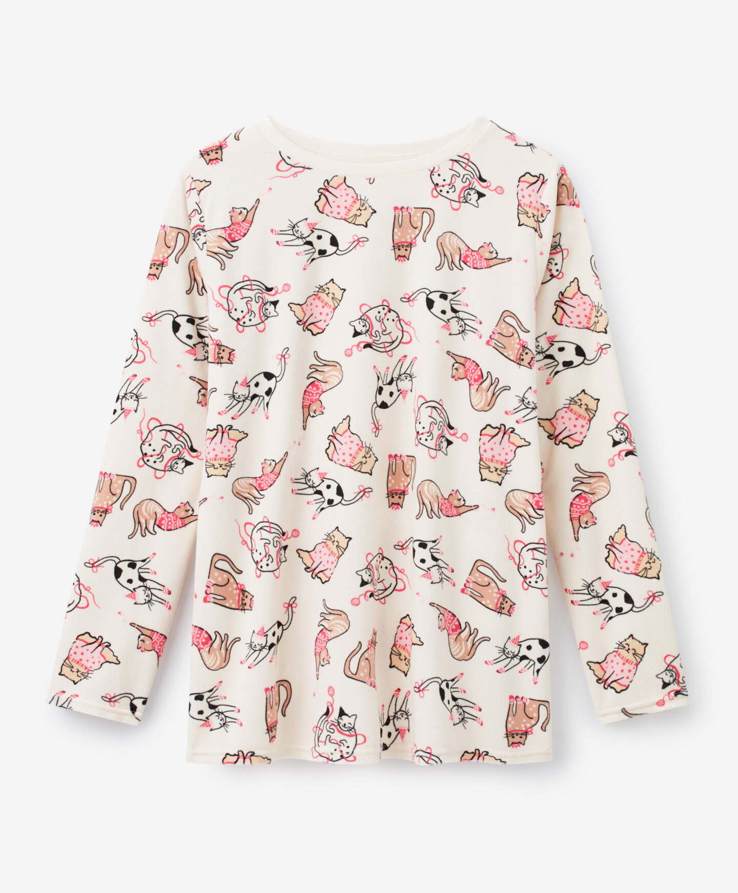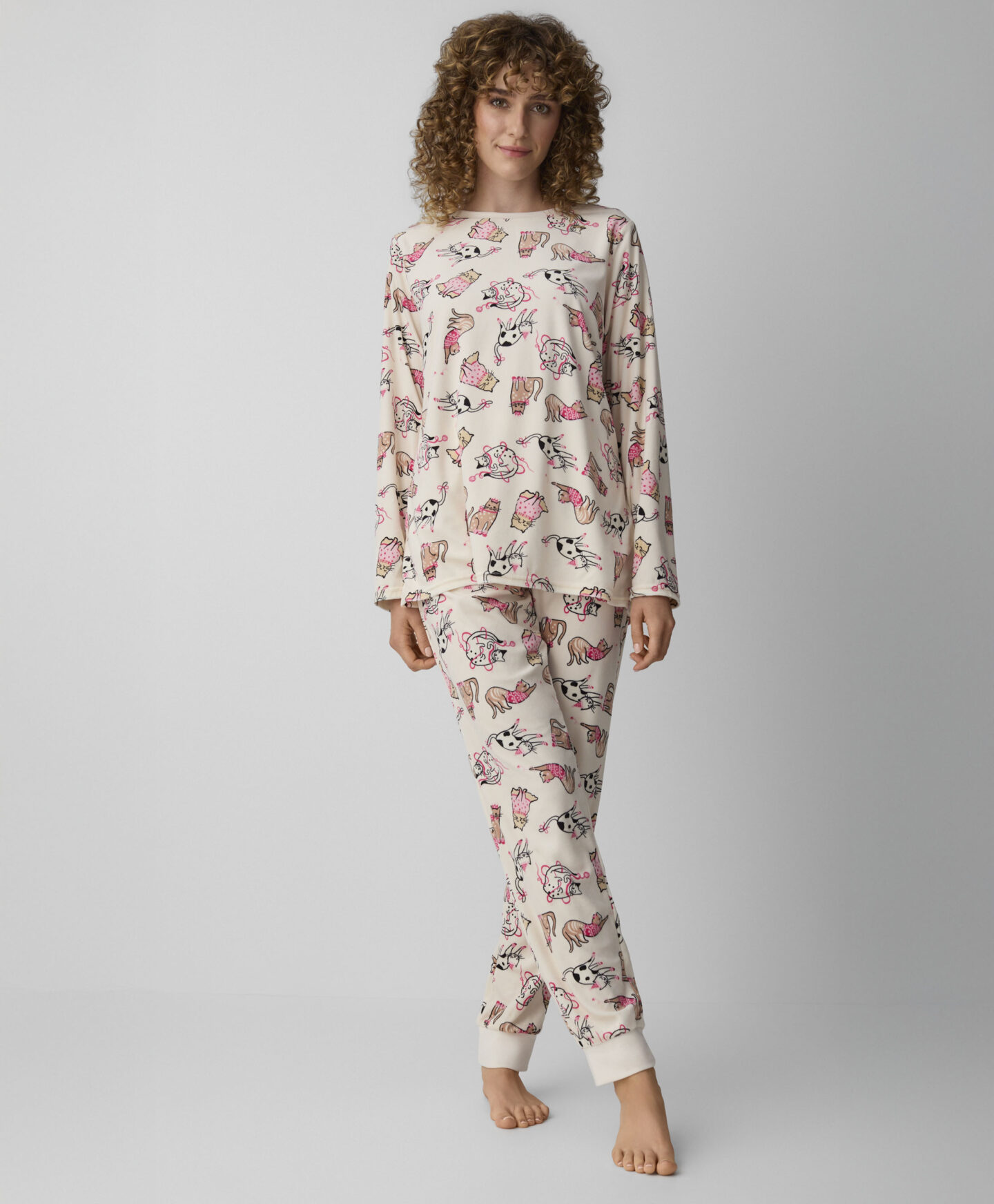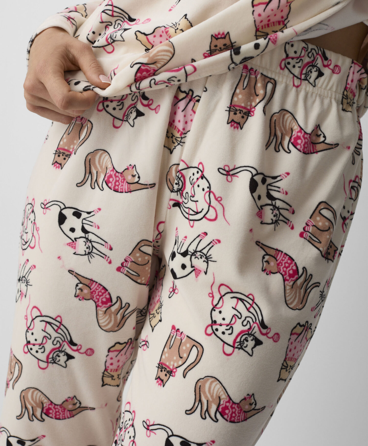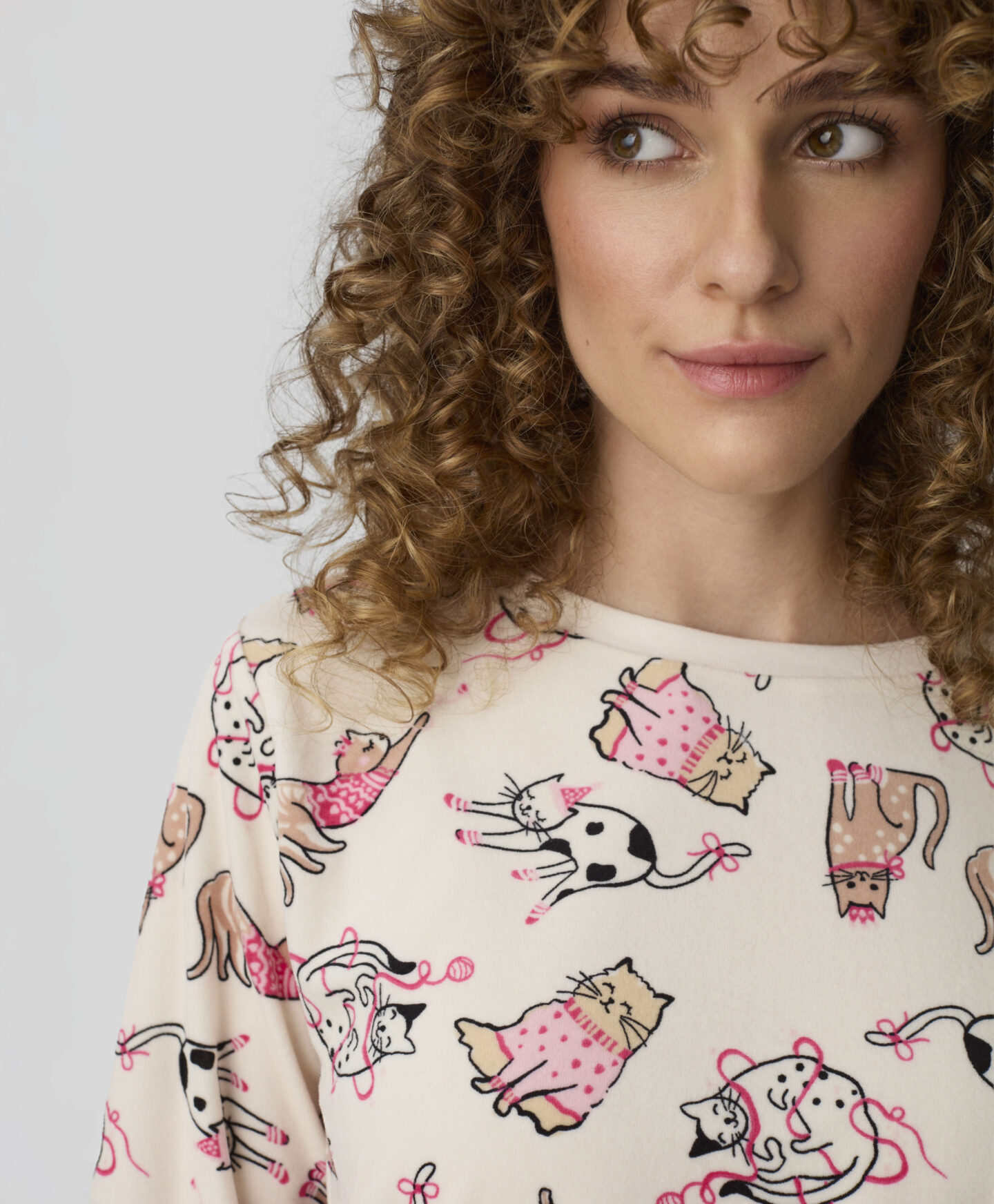 Dámské velurové pyžamo s kočičkami je ideální na chladnější dny. Z měkkého a na dotek příjemného materiálu, poskytuje výjimečné pohodlí a volnost pohybu. Hravé vzory s kočičími motivy si snadno oblíbíte.