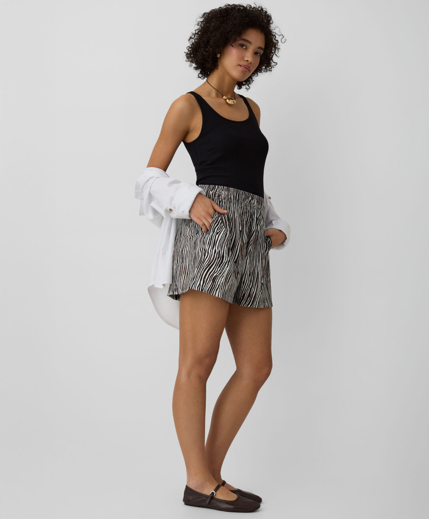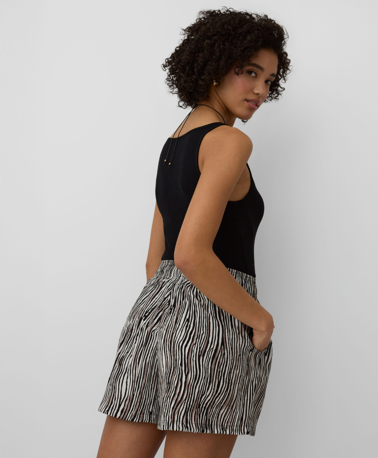 Tyto dámské šortky s vysokým obsahem viskózy jsou ideální pro milovnice zvířecích vzorů. Jsou lehké, vzdušné a měkké – ideální do horkého počasí. Budou vypadat skvěle v kombinaci s jednobarevným topem, od tílek až po elegantnější košile. Elastický pas zajišťuje pohodlí.